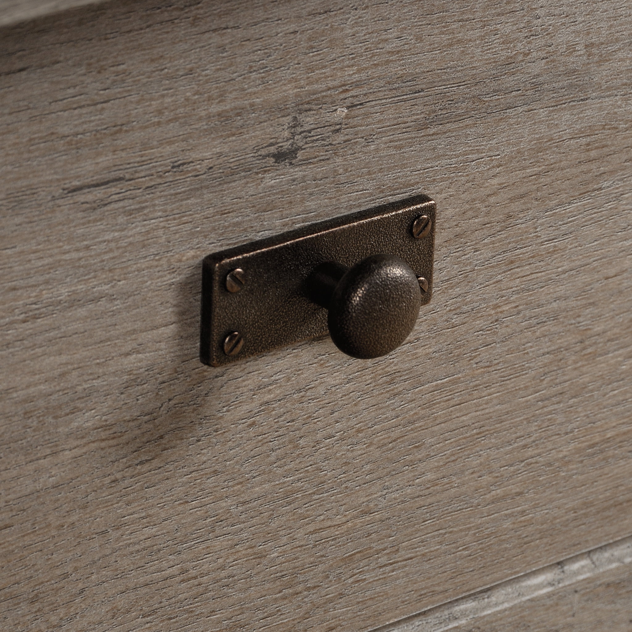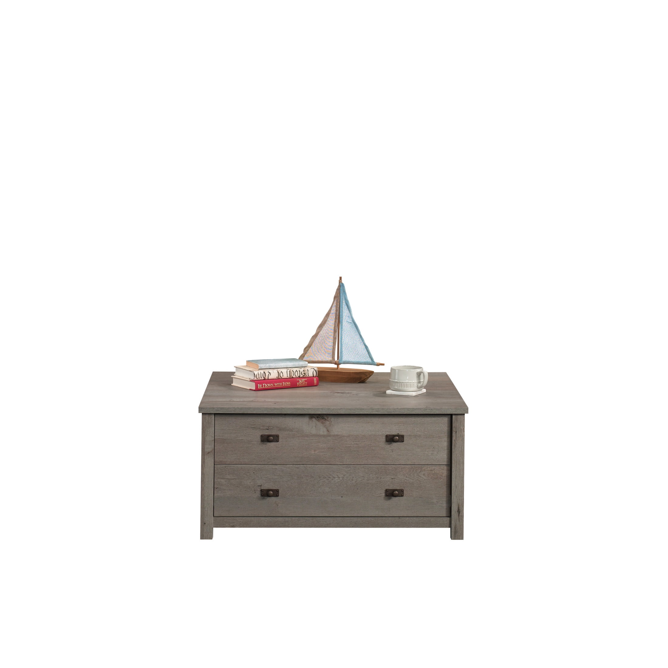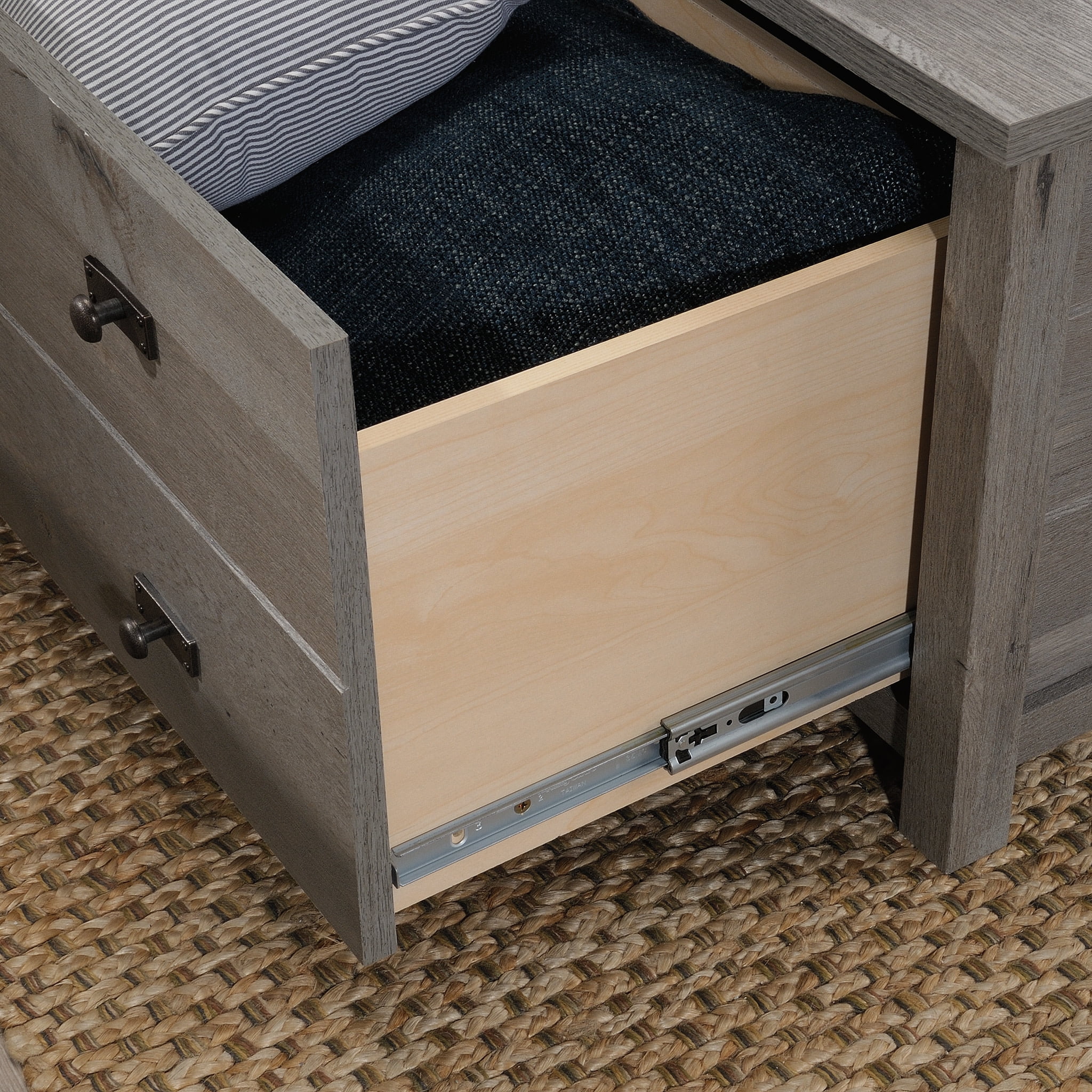 Function and style meet with this coffee table from the Cottage Road collection. This storage coffee table features two drawers with full extension slides for pillows, small blankets, books, magazines and more! This coffee table with drawers is finished on all sides for versatile placement in your home, with a complete and polished look from all angles. The spacious top surface of this coffee table with storage drawer can be styled with a plant, photos of your family, and your cup of coffee. To speed up the assembly process, this coffee table with drawers features slide-on moldings and a T-lock drawer system. A Mystic Oak finish makes this living room coffee table a modern addition to any living room. We hope you like what you see. Sauder designers travel the world and bring back the best and latest in style, finish, and color trends. This inspiring world travel is evident in the cutting edge and innovative furniture solutions we offer to you!