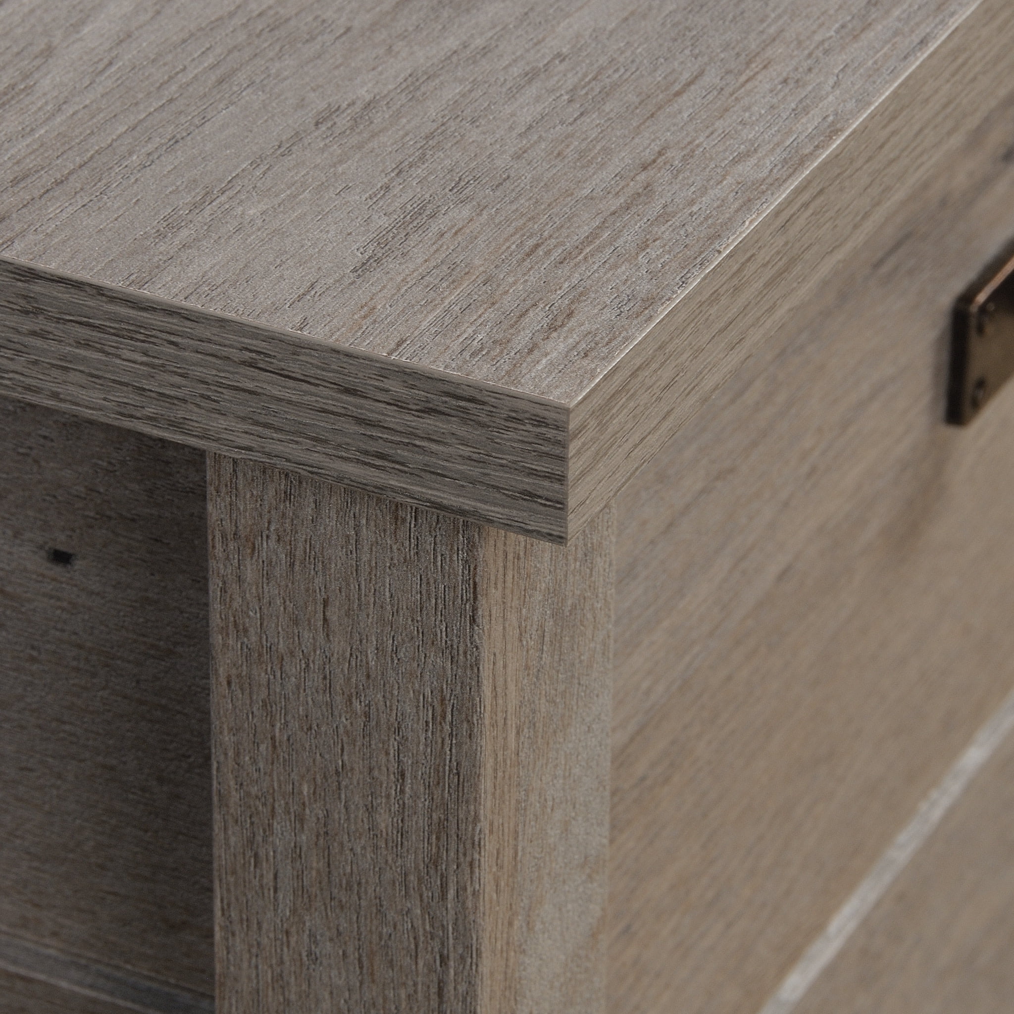 Assembled Dimensions: 32.44″ L x 31.89″ W x 16.1″ H Two drawers feature full extension slides for storage of remotes, books, and more Finished on all sides for versatile placement and a polished look from every angle Quick and easy assembly with slide-on moldings and T-lock drawer system Mystic Oak finish Model #: 427313 Box Dimensions: 37.75″ L x 32.5″ W x 4.06″ H For additional questions or any issues, please contact the manufacturer at 1-800-523-3987. Be sure to check out the Sauder Cottage Road collection for more great items!