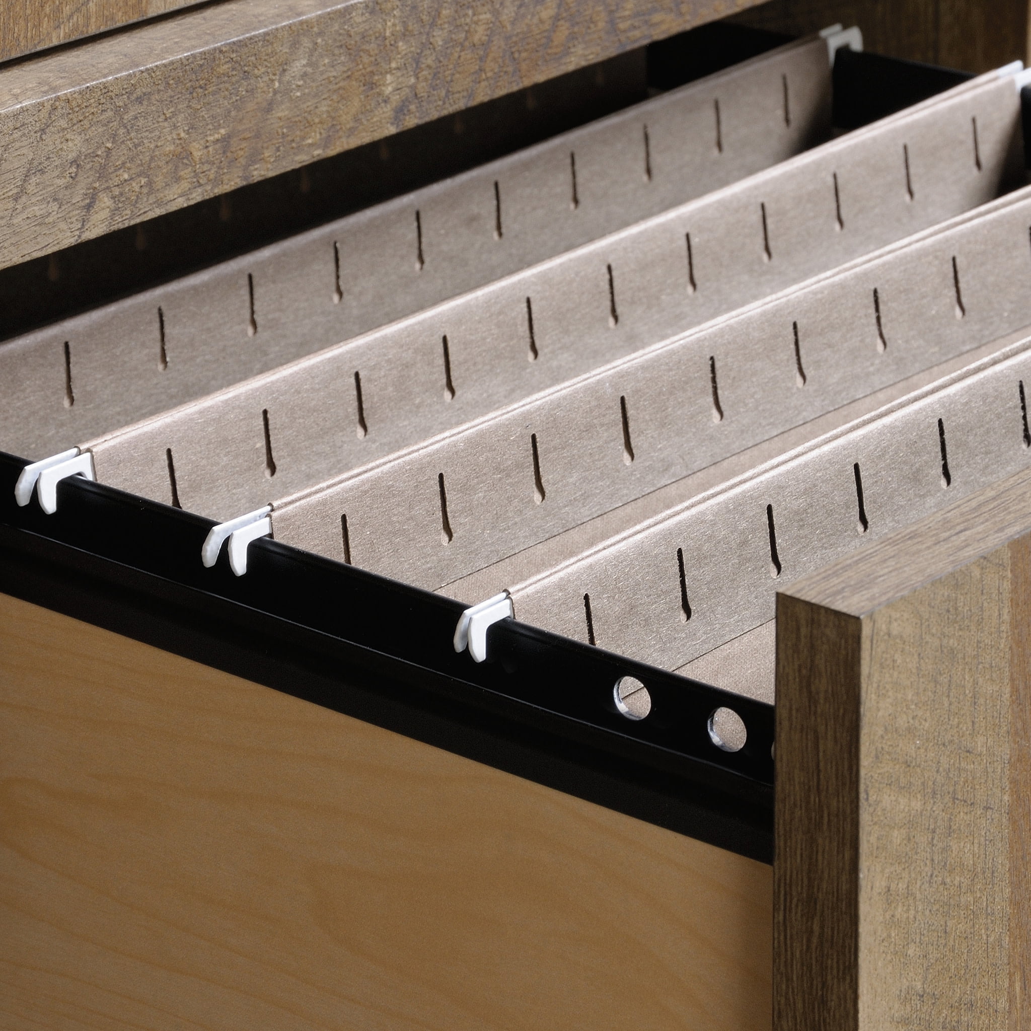 Assembled Dimensions: 53.15″ L x 21.50″ W x 30.00″ H Two drawers with metal runners and safety stops Lower drawer holds letter-size hanging files Quick and easy assembly with patented T-lock drawer system Craftsman Oak finish Model #: 420196 Box Dimensions: 59.88″ L x 22.13″ W x 4.88″ H For additional questions or any issues, please contact the manufacturer at 1-800-523-3987. Be sure to check out the Sauder Dakota Pass collection for more great items!