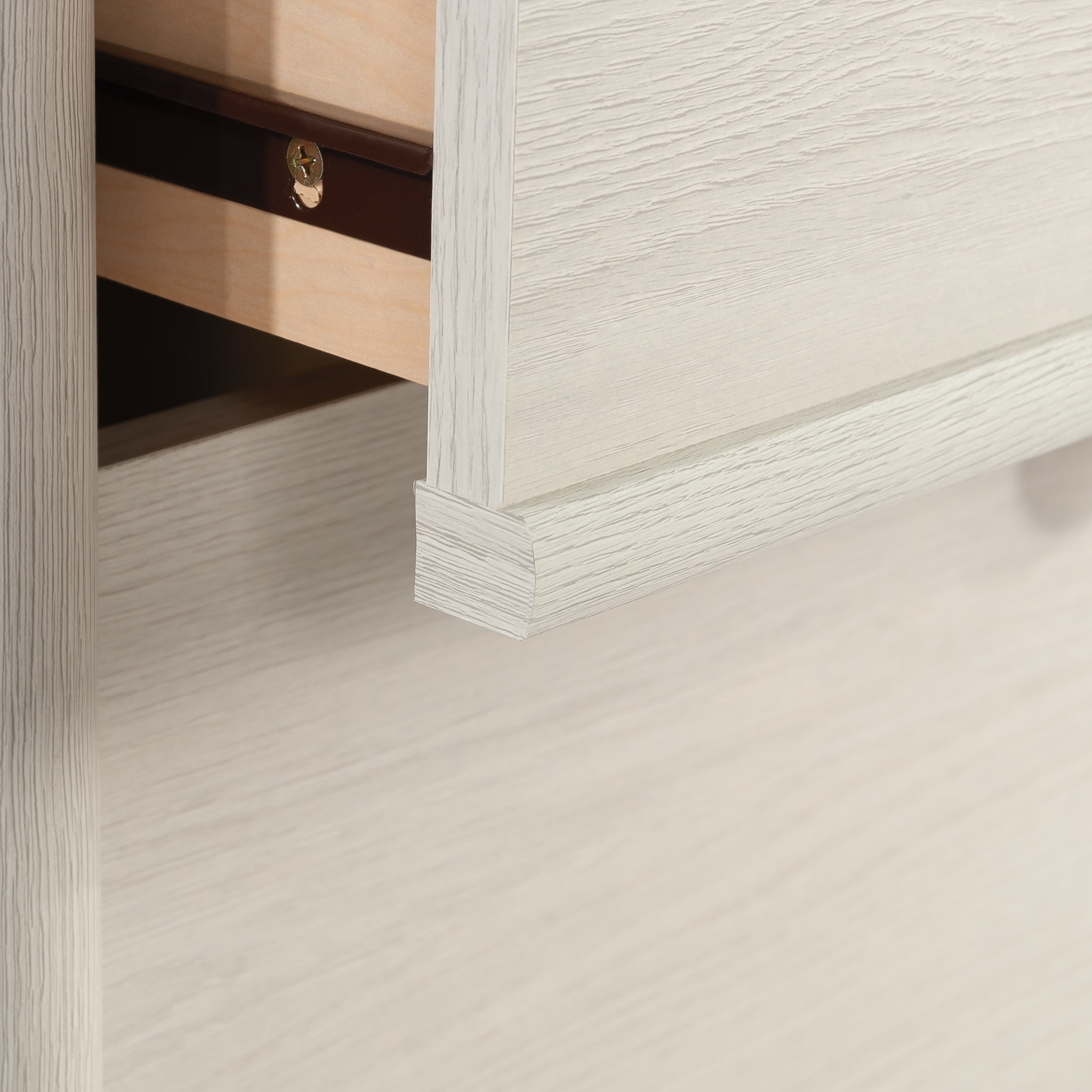 Give yourself spacious storage and good looks with this 6-drawer dresser from the Dover Edge collection. We know how difficult it can be to cram sweaters, denim, and more into drawers that are too small. That’s why this bedroom dresser has four lower drawers that are extra deep for those items that always get stuck while trying to close the drawer. Use the smaller top two drawers of this modern dresser for socks, t-shirts, makeup, and more, allowing you to use the top surface space for your jewelry, a candle, photos of your loved ones and your alarm clock. A tip restraint strap is included on this dresser with drawers for extra safety. Quick and easy assembly with a T-slot drawer system means you will spend less time assembling and more time incorporating this dresser into your space with your own personal touches. Finished in a Glacier Oak, this dresser for storage is the perfect addition to the master bedroom, guest room, or your spare room.