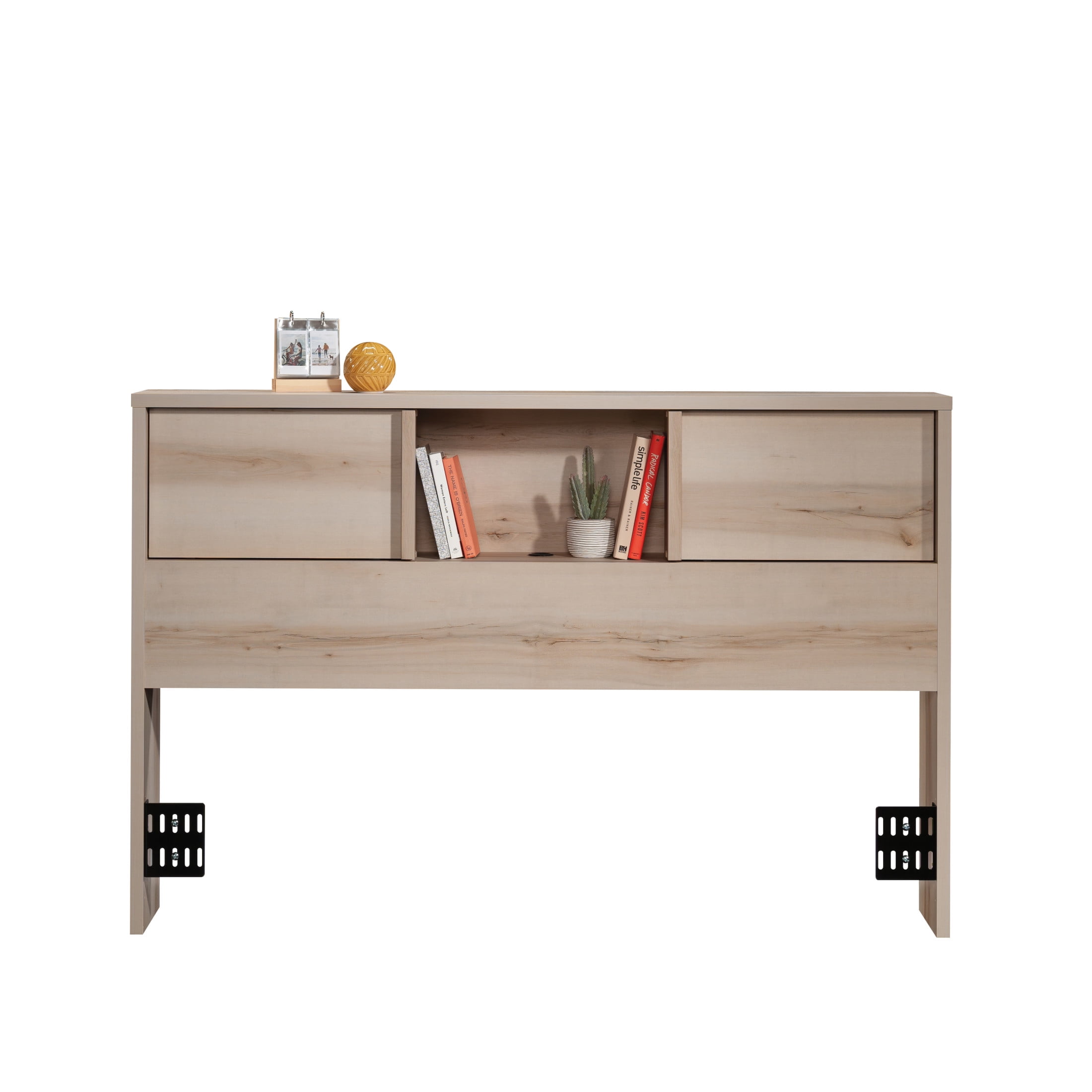 Assembled Dimensions: 61.1″ L x 9.4″ W x 40.2″ H Attaches to full or queen size bed Hidden storage behind sliding doors for nighttime necessities Two adjustable shelves to accommodate items of various heights Cord management for your phone charging cables Pacific Maple finish Model #: 433261 Box Dimensions: 67.6″ L x 11.8″ W x 5.3″ H For additional questions or any issues, please contact the manufacturer at 1-800-523-3987. Be sure to check out the Sauder Harvey Park collection for more great items!
