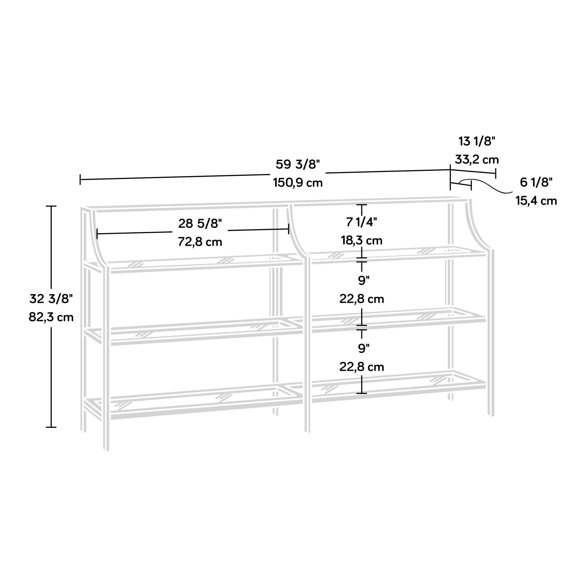 Craving a fresh touch of style for you home? Look no further, we’ve got just what you need! Update your home with the charming good looks and modern inspired design of this console table from the Harvey Park collection. This console table features open shelving that includes three large shelves and one narrow shelf for convenient storage and display of an array of different items like decorative plants, vases, and photos of your family and friends. Each shelf features a safety-tempered glass surface that gives it its one-of-a-kind look that is sure to stand out in your home. This sofa table is finished on all sides for versatile placement throughout any room. Use it as a console in your dining room or a sofa table in the living room. It looks great no matter where it stands. Constructed from sturdy metal and finished in black, this beautiful console table will have your home looking brand new. Features: Finish: Black Material: Metal and Glass Open shelving for storage and display of books, binders, framed photos, collectibles, and more Safety-tempered glass for added detail Finished on all sides for versatile placement anywhere in your home Metal construction for long lasting durability Specifications: Product Dimensions: 32.32″ H x 59.37″ W x 13.15″ D Product Weight: 64.9 lbs Number of Shelves: 3 Weight Capacity: 30 lbs