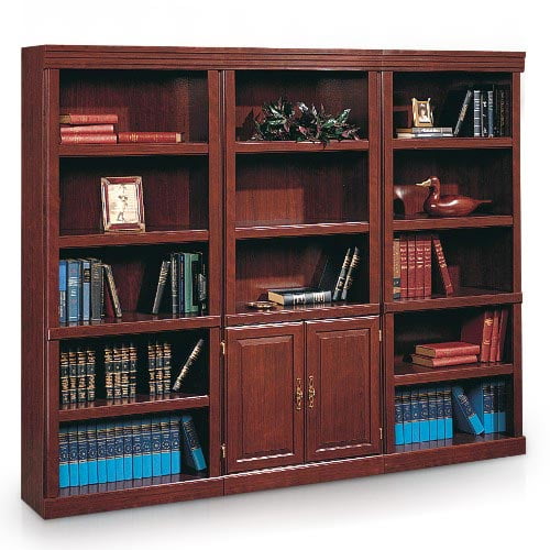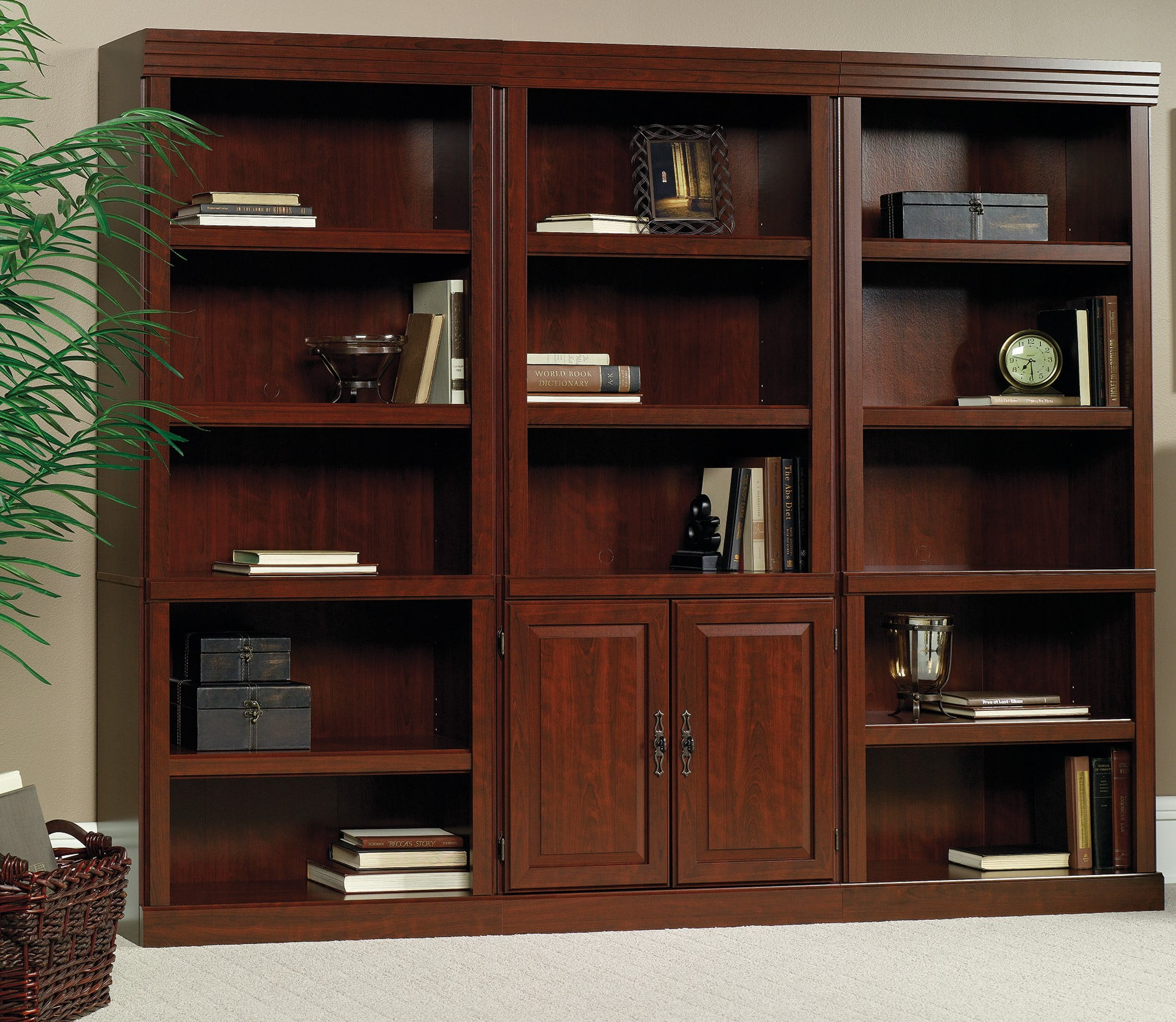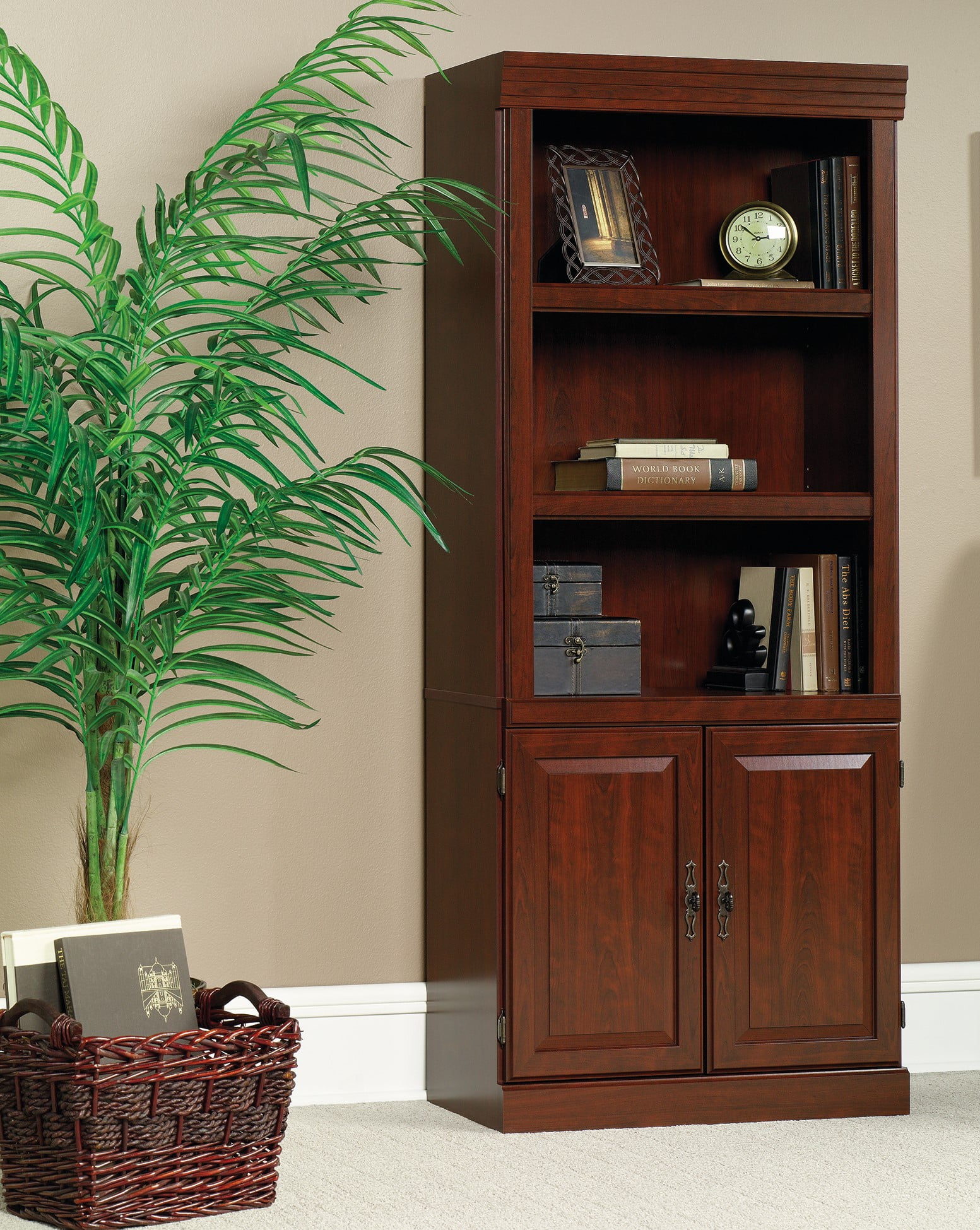 Add a touch of traditional beauty to your home with this library with doors from the Heritage Hill collection. This tall bookcase features five shelves for convenient storage of a variety of items. This 5-shelf bookcase with doors includes three adjustable shelves, allowing you to customize your storage options for versatile display options. Find room to store all your books, bins, décor, and more! Hidden storage behind the two lower doors creates a place for you to display the best and forget the rest. Finished in Classic Cherry, this handsome living room bookcase makes a great addition to your home or office. We hope you like what you see. Sauder designers travel the world and bring back the best and latest in style, finish, and color trends. This inspiring world travel is evident in the cutting edge and innovative furniture solutions we offer to you, like this traditional style bookcase!