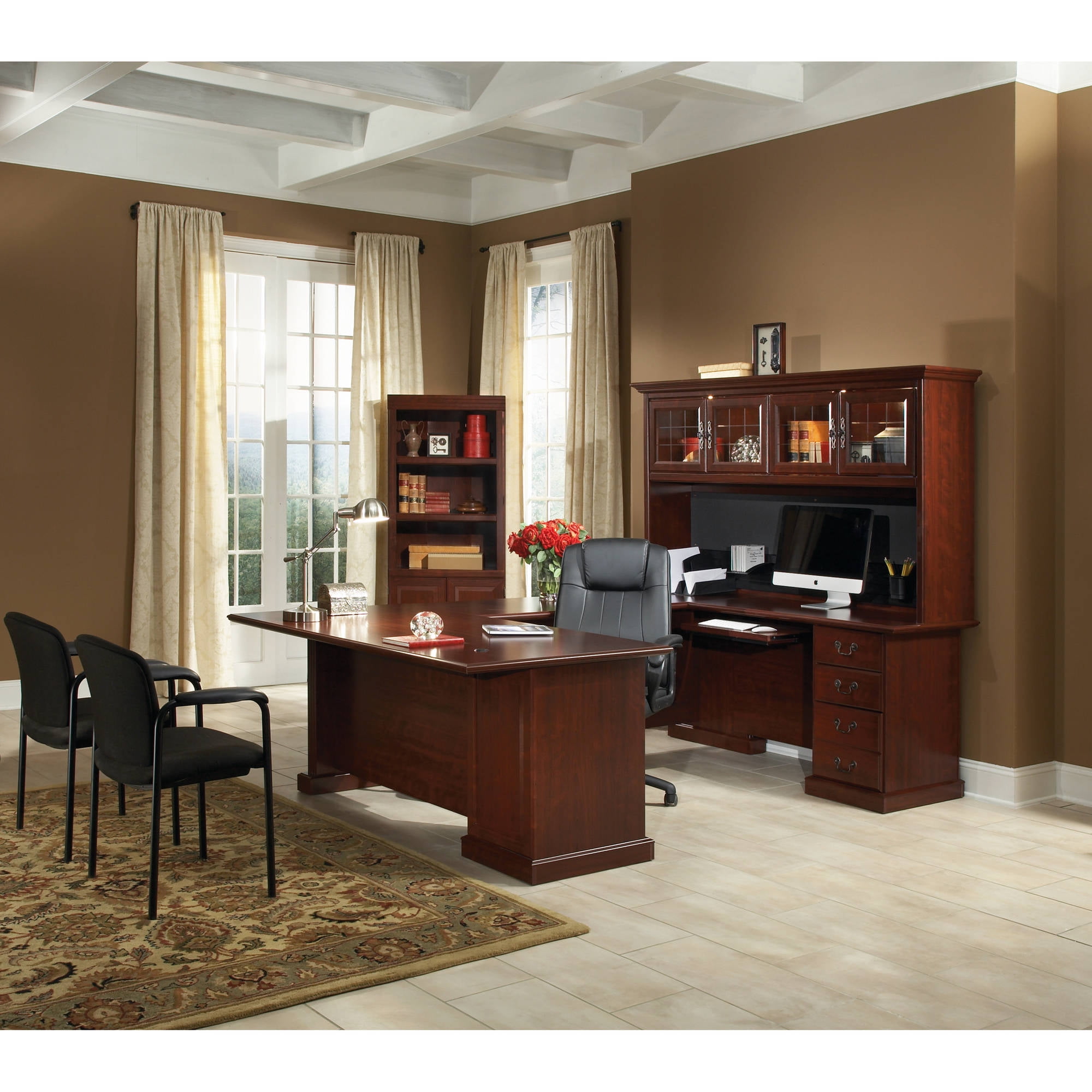 Elevate your décor with this library bookshelf from the Heritage Hill® collection. This 5-shelf bookcase features three adjustable shelves so you can store and display books, bins, collectibles, awards and more! This tall display bookcase also includes cord access through the enclosed back panel for convenient organization of charging cords. Finished in Classic Cherry®, this elegant wood bookcase adds a touch of traditional beauty to any room. Use it as a living room bookcase, in the home office, or just about anywhere you need a storage solution. We hope you like what you see with this 5-shelf bookshelf. Our designers travel the world and bring back the best and latest in style, finish, and color trends. This inspiring world travel is evident in the cutting edge and innovative furniture solutions we offer to you! Other affordable furnishings from the collection (sold separately) are available to complete the look.