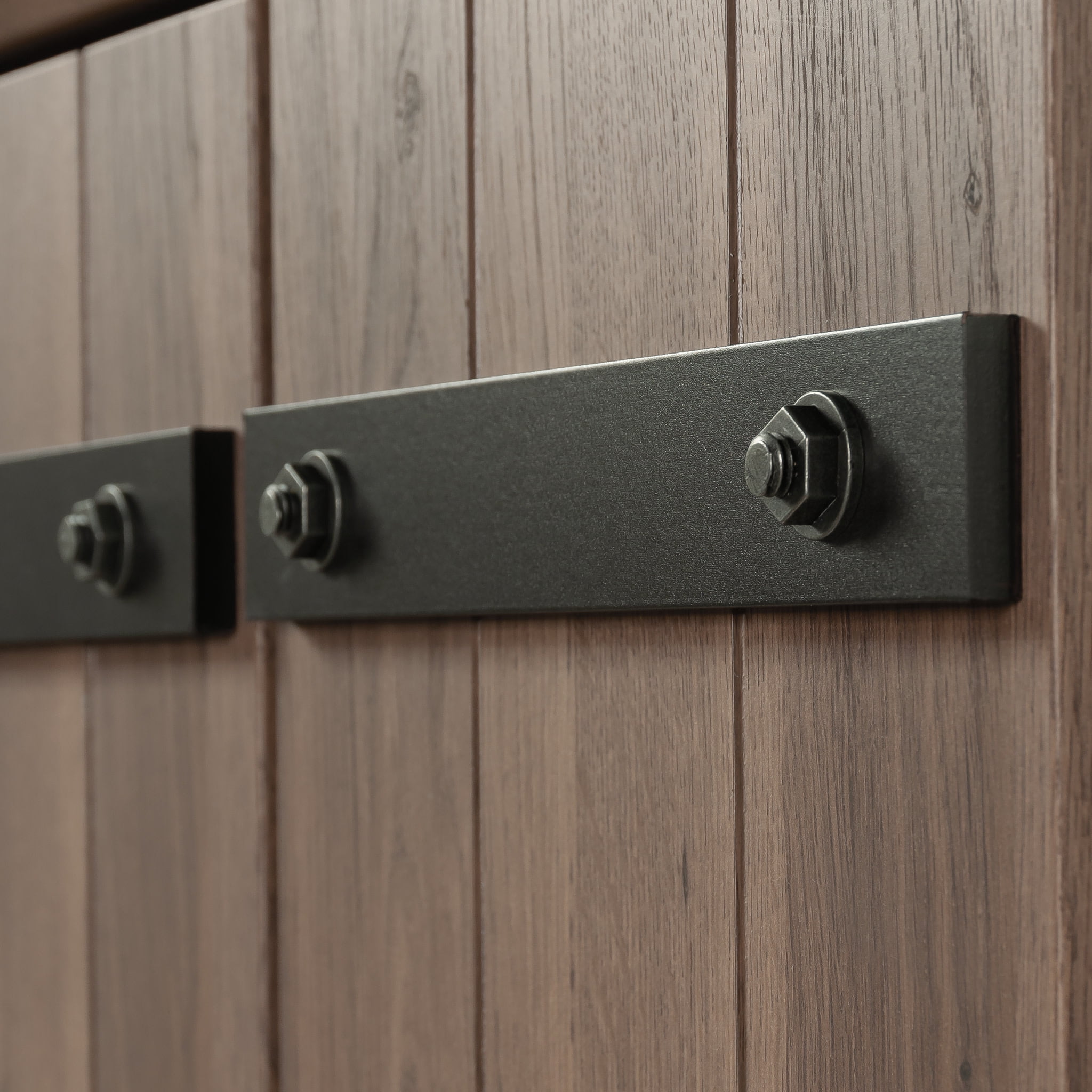 Contain the clutter and chaos of your home with this 2-door storage cabinet from the HomePlus collection. This storage cabinet with doors features four adjustable shelves behind its planked style barn doors to store anything from pantry staples like cans of food, cereal boxes, and pasta, to linens and toys. The adjustable shelves allow for various customizable options so there is always room for your tall books and stacks of board games. This modern farmhouse storage cabinet features adjustable base levelers to ensure your unit is level, even if the floors are not. An enclosed back panel with cord access pass-throughs allows for easy charging of phones, tablets, computers, and more. Add this two door storage cabinet to any room in your home that needs more store-away solutions—the entryway, hallway, spare room, and more. Finished in Salt Oak, this piece can even be used as a garage storage cabinet. No matter where it’s placed, it will add style and functionally to any room in your home.