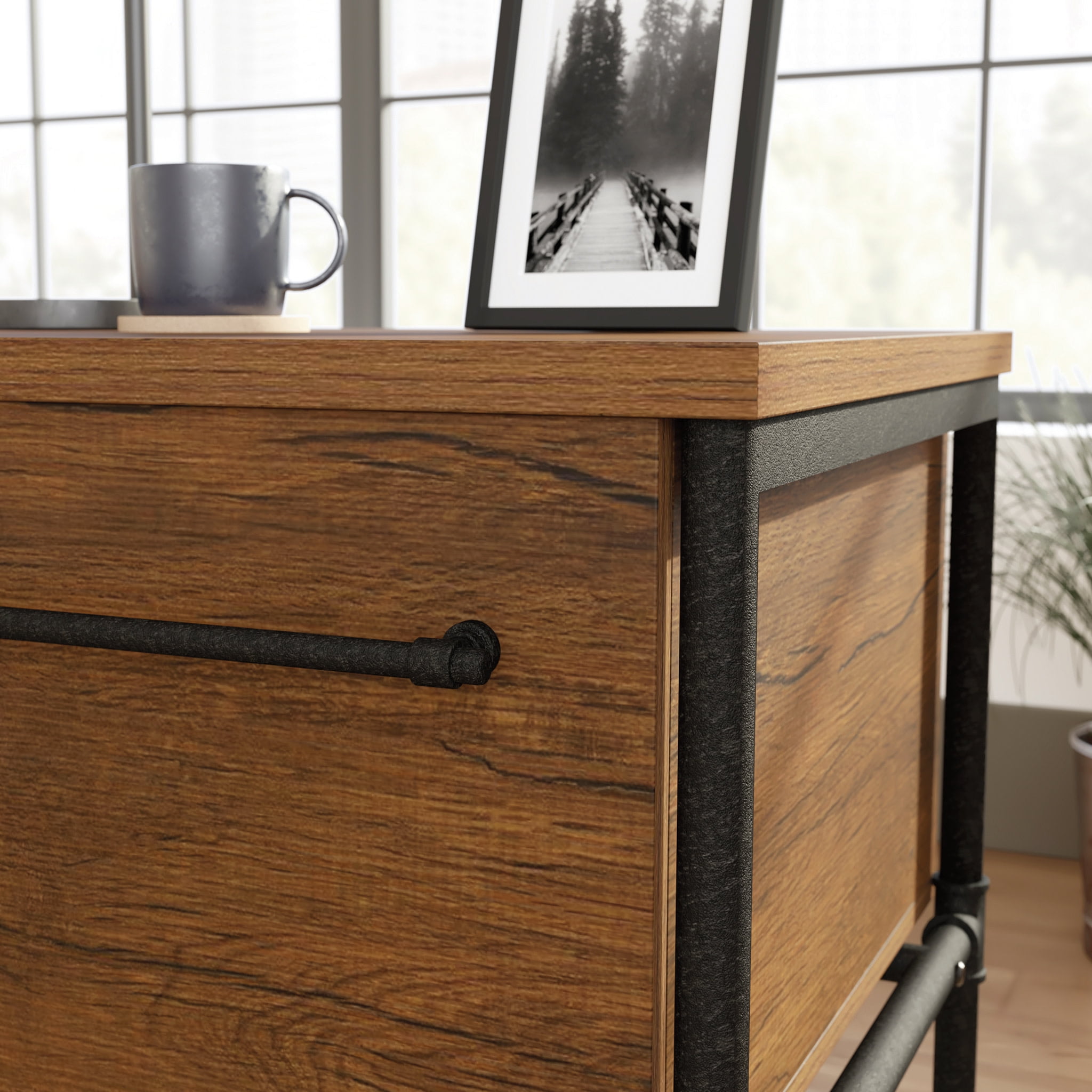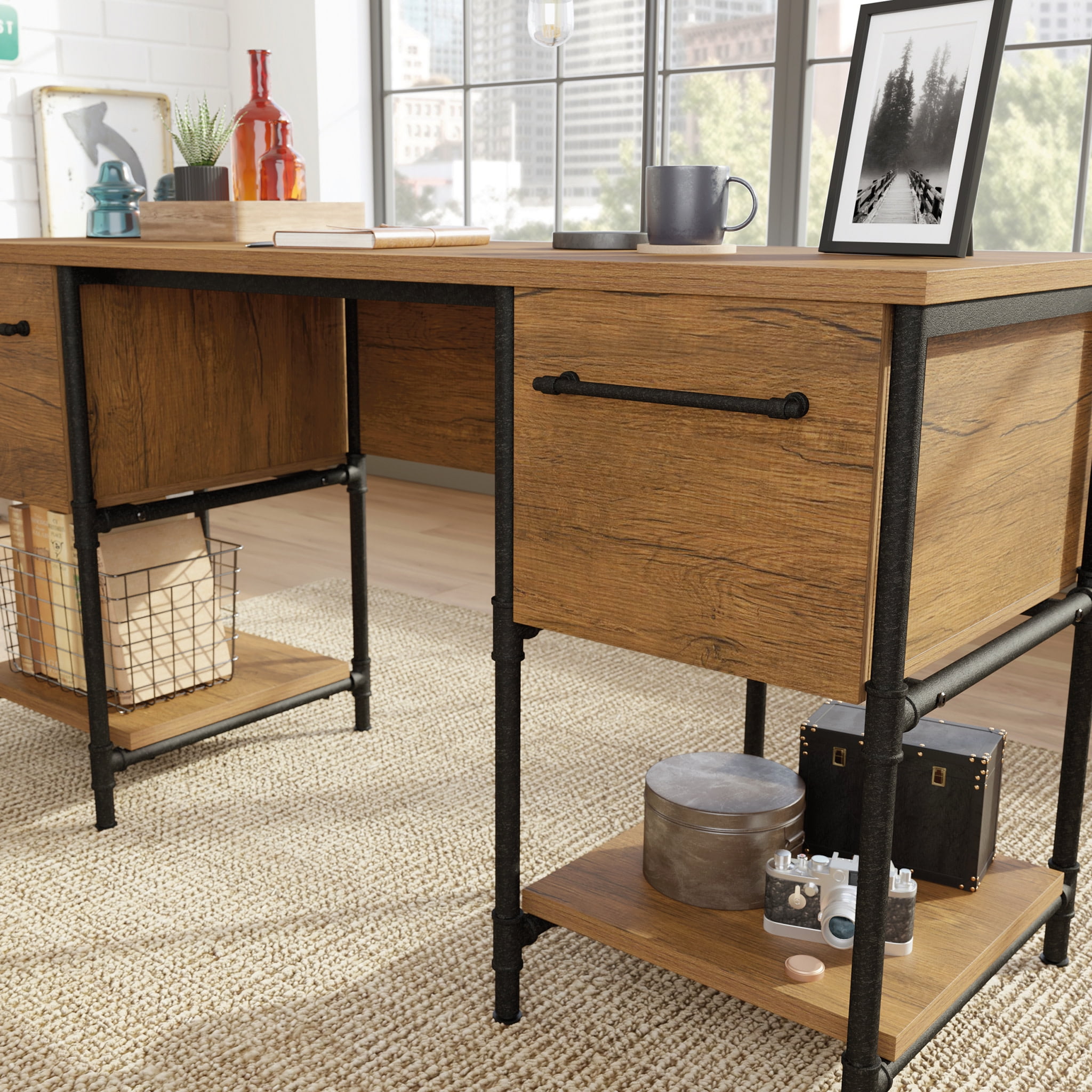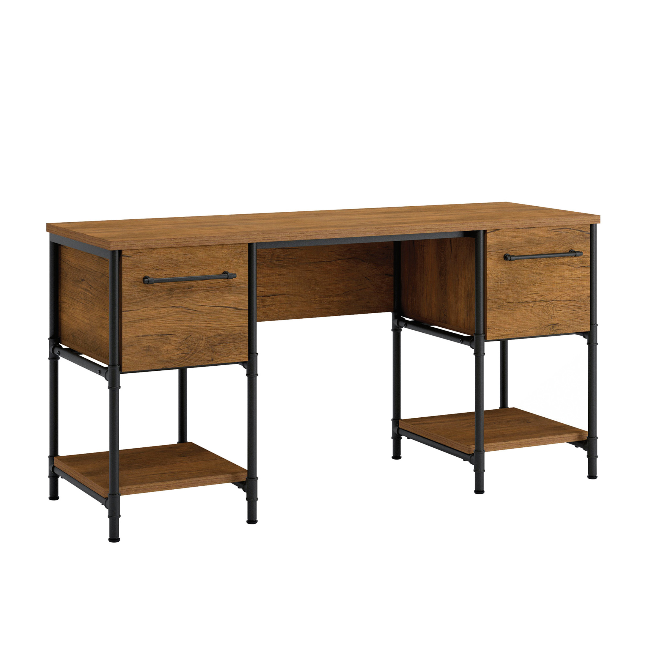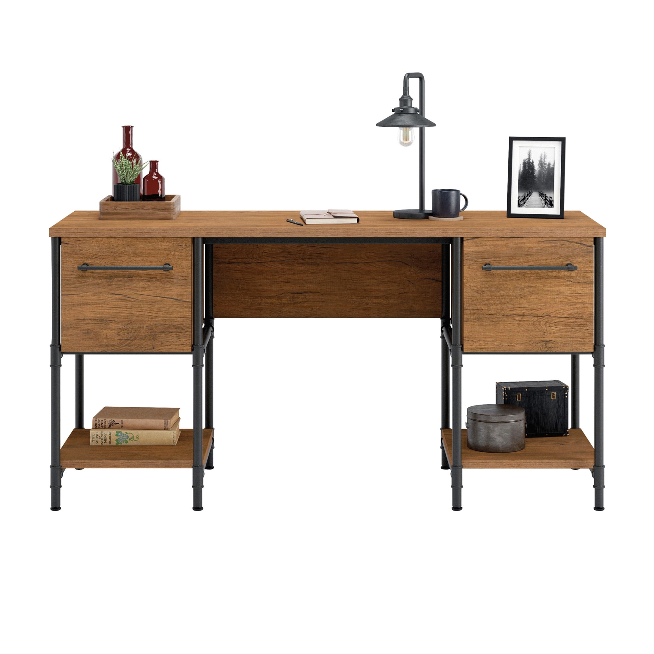 Sauder Iron City Industrial Double Pedestal Office Desk, Checked Oak Finish