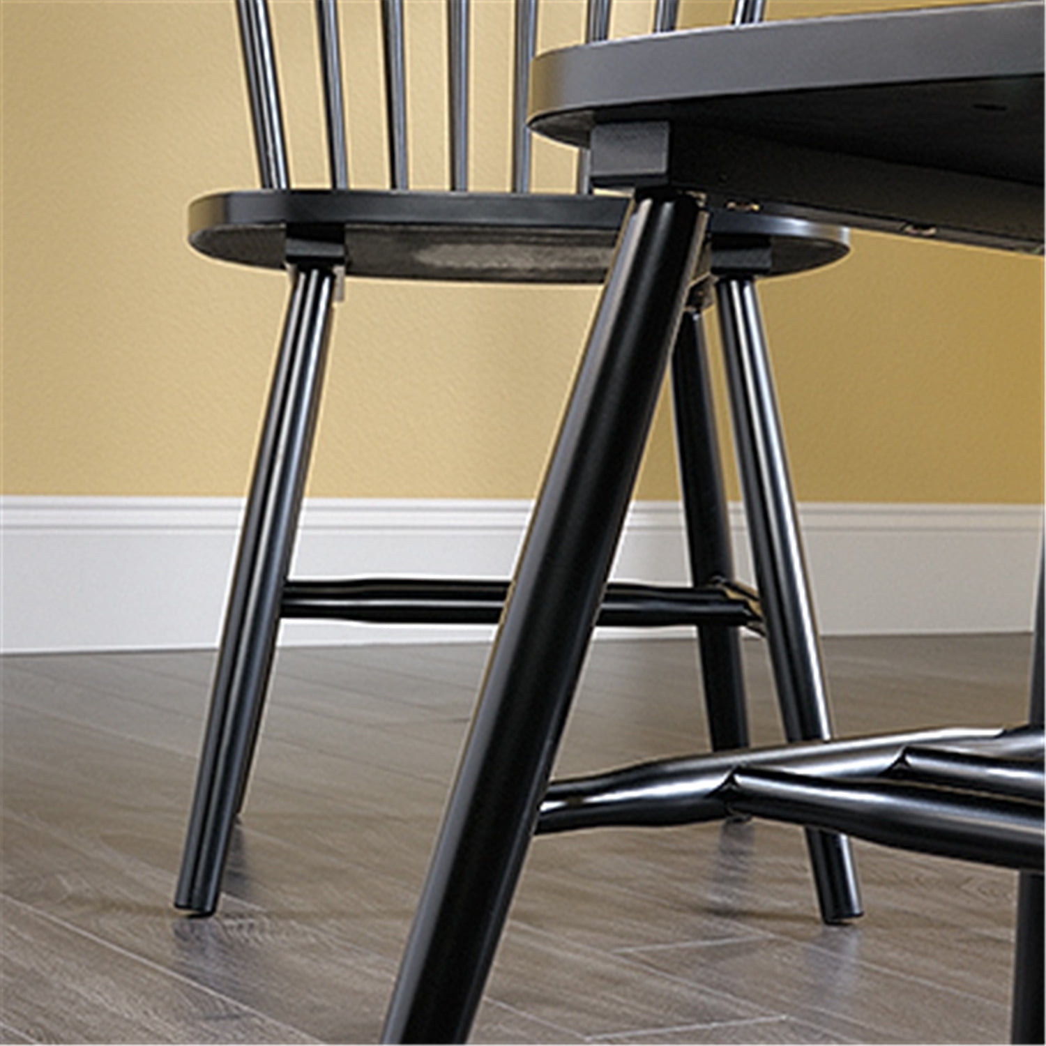 Classic farmhouse style with modern charm—add additional seating to your home with this pair of spindle back chairs from the New Grange collection. This wooden spindle chairs (in a set of two) features a solid wood construction for added durability while you sit down to tie your shoes, relax around the dinner table, or take a load off after a long day of work. A modern farmhouse chair adds simple style and charming design no matter where you use it in your home – as additional seating in a living room, or in the dining room. The farmhouse spindle chair comes in a set of two for double the style and seating. Buy multiple sets for a complete look – because you never know when family and friends will pop in to visit. The back detailing gives this spindle chair a classic, farmhouse appeal that will complement any room of your home. Finished in Black, this handsome set of wooden chairs gives you the style you have always wanted with the functionality you need. This item is for residential use only. Features : Finish: Black Materials: Solid wood construction for durability and style. Includes two chairs because one would be lonely. Residential use only. Set of 2. Specifications : Product Dimensions : 36.22” H x 20.48” W x 21.26” D Product Weight : 26.4 lbs