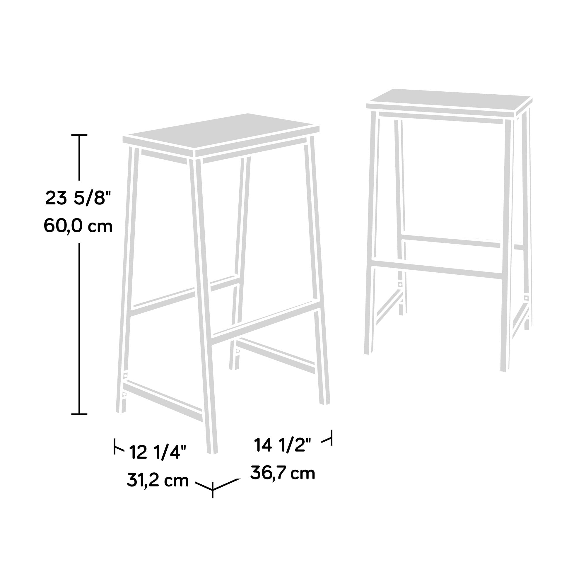 Assembled Dimensions: 14.45″ L x 12.28″ W x 23.62″ H Includes two chairs Durable, powder coated metal frame Detailed instruction book for easy assembly Residential use only Charter Oak” finish Model #: 431514 Box Dimensions: 27.17″ L x 17.13″ W x 4.72″ H For additional questions or any issues, please contact the manufacturer at 1-800-523-3987. Be sure to check out the Sauder North Avenue collection for more great items!