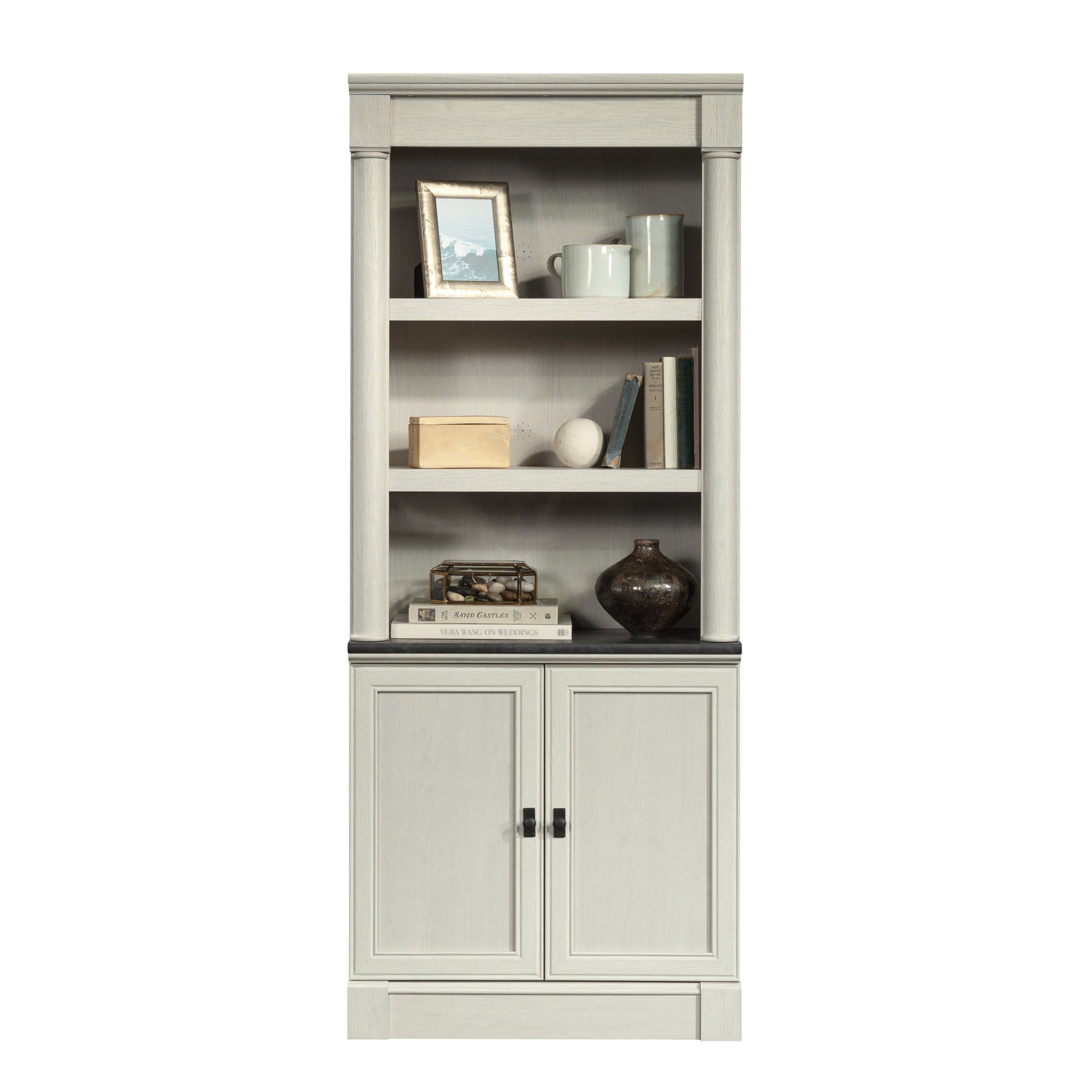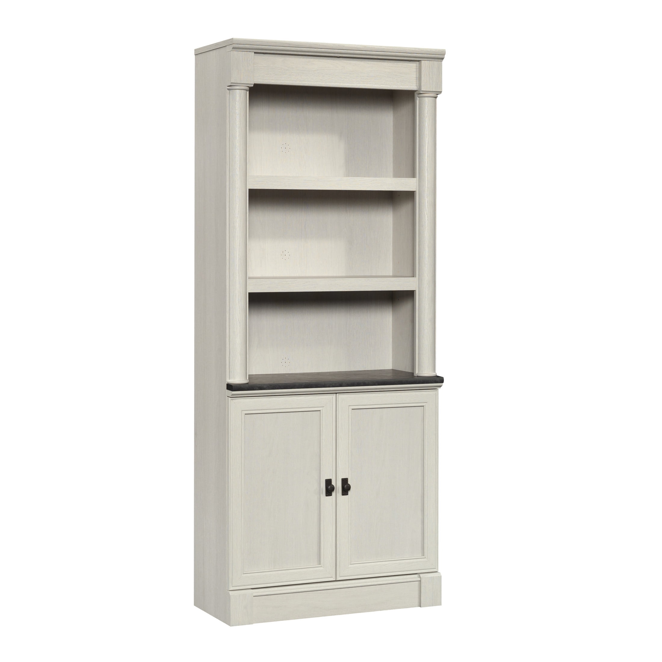 No home office is complete without convenient storage and organization. Tidy up your workspace without having to sacrifice on style with this library bookcase with doors from the Palladia collection. This library bookcase with doors features spacious shelving that provide you with the space to store and display various items such as your collection of books, decorative plants, stacks of magazines, and photos of your family and friends. Three of the shelves are adjustable (with one behind the doors), allowing them to move to different heights to create flexible storage options for items of all shapes and sizes. This library bookcase also features hidden storage behind two framed panel doors for office clutter and extra supplies, or other household items. The enclosed back panel includes cord access so you can keep all your wires neat and out of sight. Finished in Glacier Oak with a dark Rosso Slate finish accent, this 5-shelf bookcase gives your home office just the organization it needs. Features: Finish: Glacier Oak finish with Rosso Slate finish accents Material: Engineered Wood Three (3) adjustable shelves provide versatility. Hidden storage behind doors hides clutter and chaos. Enclosed back panel has cord access. Quick and easy assembly with slide-on moldings. Specifications: Product Dimensions: 71.85″H x 29.37″W x 13.89″D Product Weight: 91 lbs Weight Capacity: 35 lbs