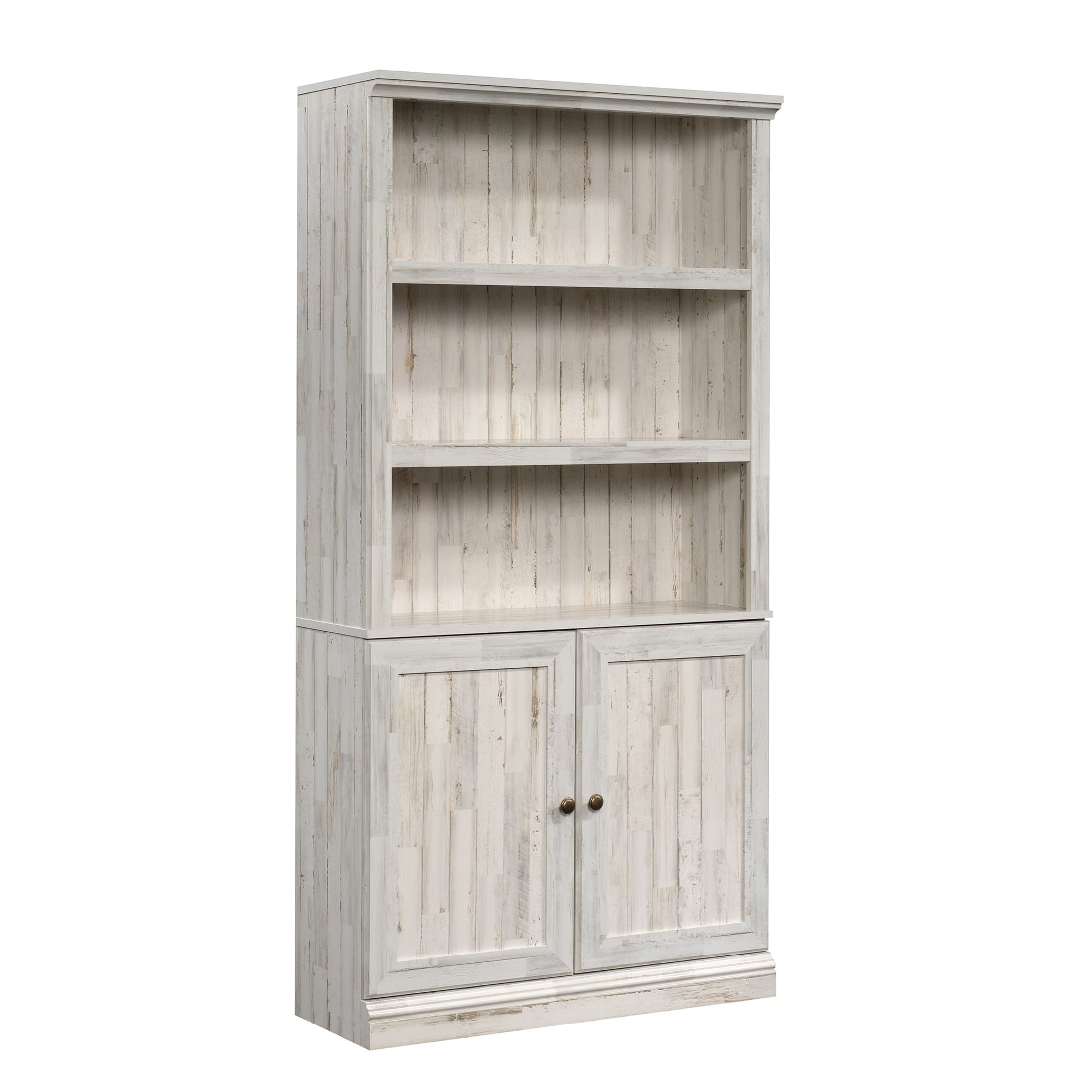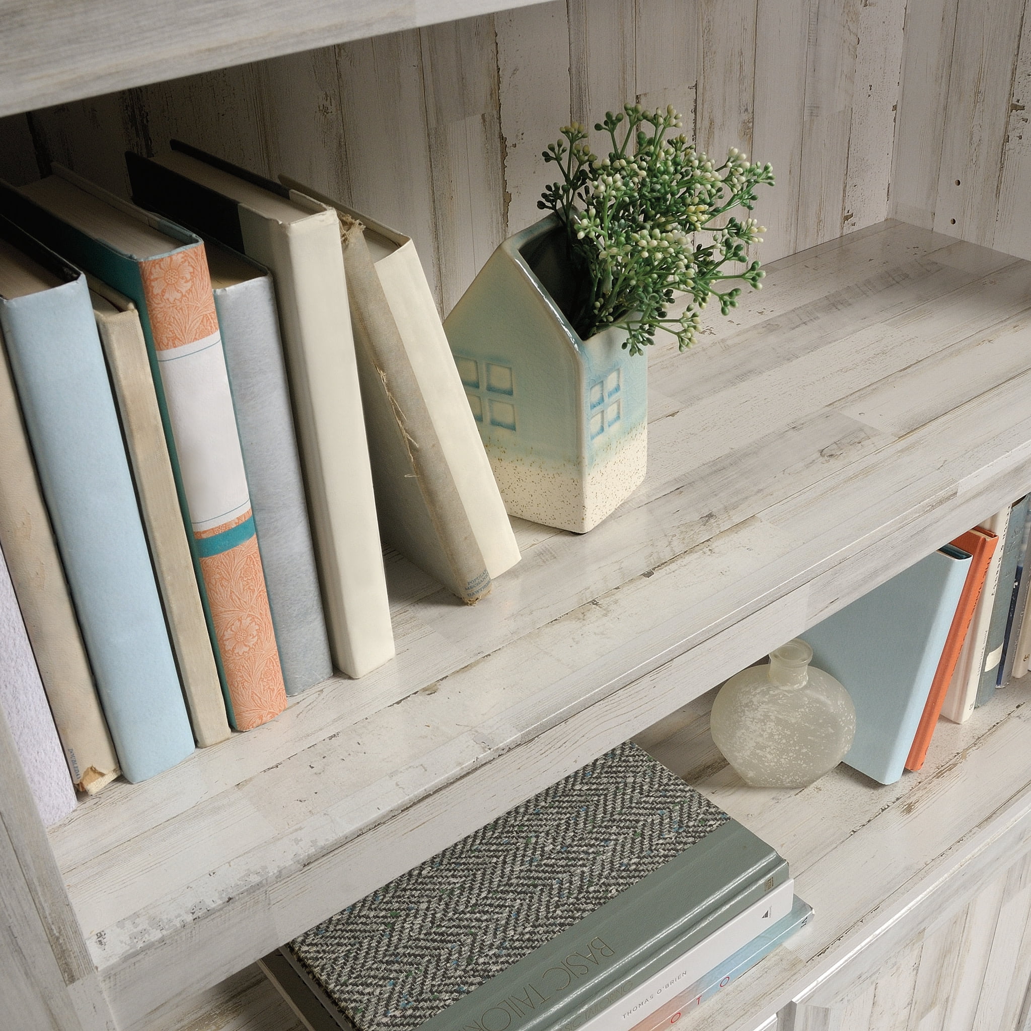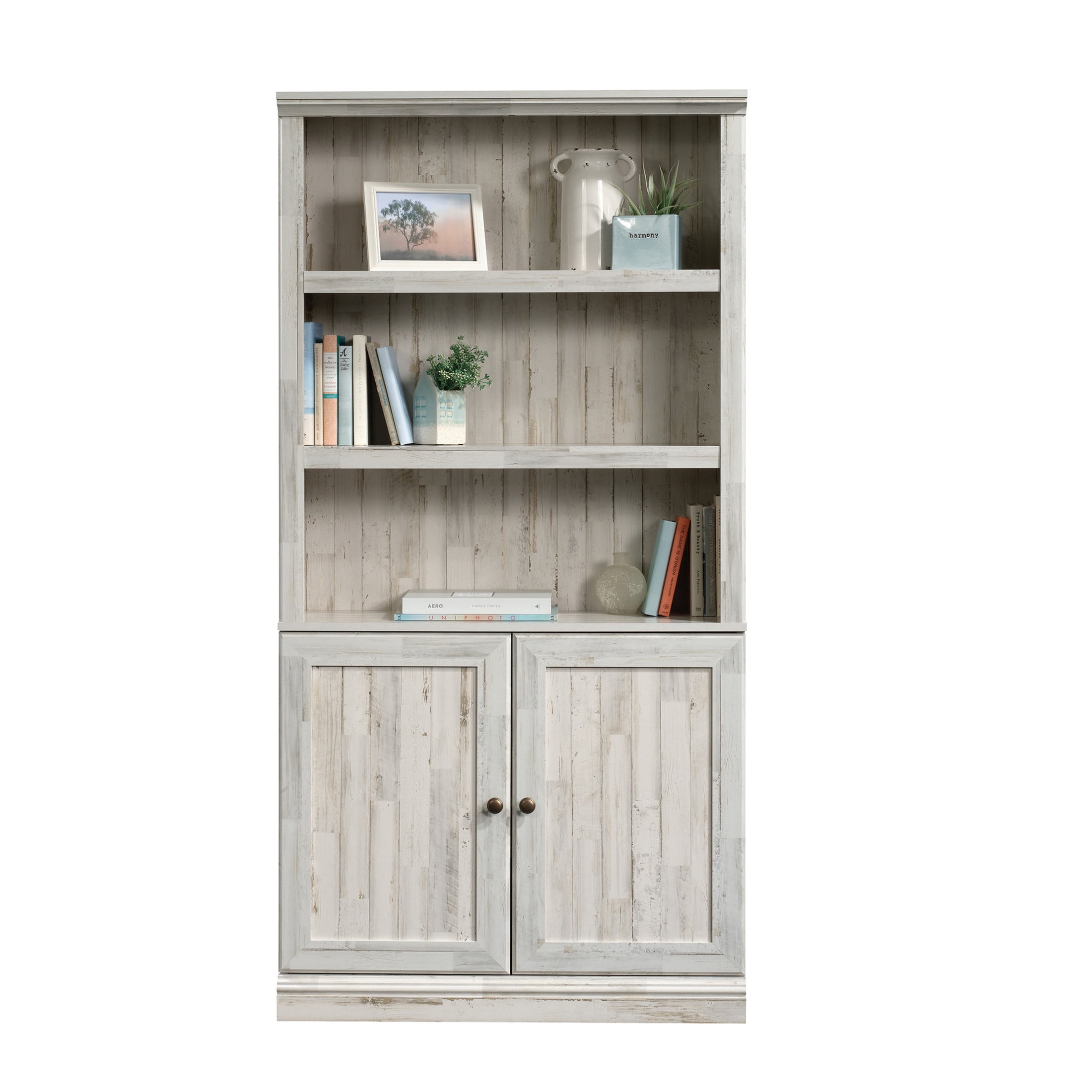 Add the storage solutions your home needs without sacrificing the style you love with this 3-shelf bookcase from the Sauder Select collection. This bookcase with doors features three large shelves that provide space to store and display items like your favorite novels, a wireless speaker, decorative plants, and framed photos of your family and friends. The transitional bookcase includes three adjustable shelves that can move to different heights to store and display items of all shapes and sizes. The display bookcase also includes a hidden storage area behind its doors to stow away items you prefer to keep hidden. Its beautiful style and versatile design make this 3-shelf bookcase a great fit for any room. Finished in White Plank and detailed with attractive hardware, this wood bookcase with doors with doors is just what your home is missing.