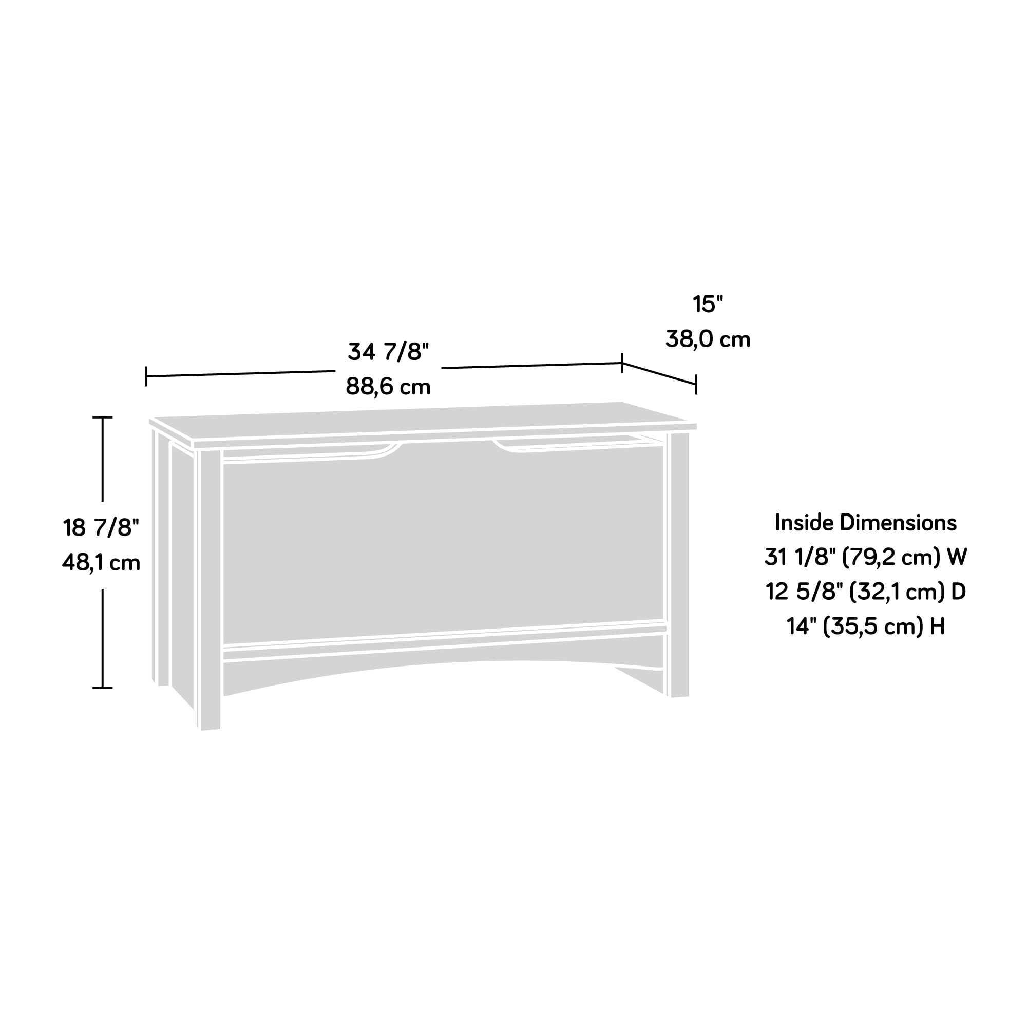 Assembled Dimensions: L: 34.88″ x W: 15.08″ x H: 18.94″ Versatile piece functions as storage chest for blankets, pillows, and more Standard ventilation and lid stay for safety to keep you and your family safe Perfect for entryway storage, living room storage, bedroom storage, etc Soft White finish Model #: 411203 Box Dimensions: L: 40.68″ x W: 19.75″ x H: 4.5″ For additional questions or any issues, please contact the manufacturer at 1-800-523-3987. Be sure to check out the Sauder Shoal Creek collection for more great items!