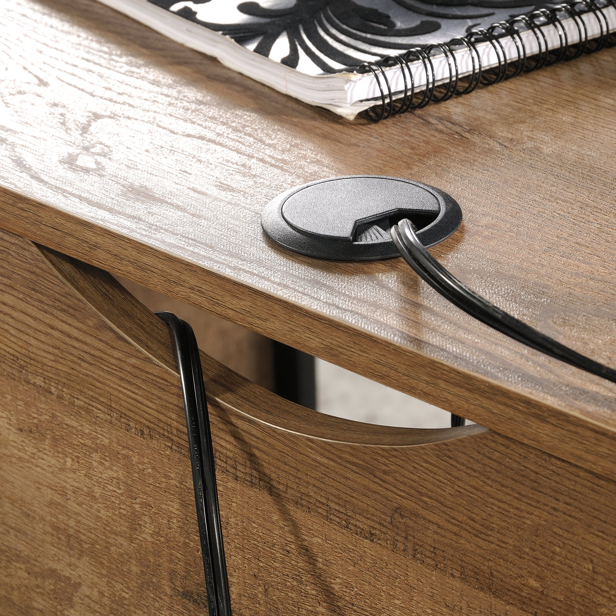 Assembled Dimensions: 59.76″ L x 57.17″ W x 29.69″ H Spacious work surface for laptop, notepads, lamp, etc Small drawer features metal runners and safety stops for storage of office supplies Lower drawer with full extension slides holds letter-size hanging files to help keep you organized Finished on all sides for versatile placement anywhere in your home Textured, powder coated metal frame for durability Two desktop grommets provides a convenient path for cord management Etched Oak finish Model #: 426454 Box Dimensions: 65.59″ L x 20.47″ W x 7.09″ H For additional questions or any issues, please contact the manufacturer at 1-800-523-3987. Be sure to check out the Sauder Station House collection for more great items!