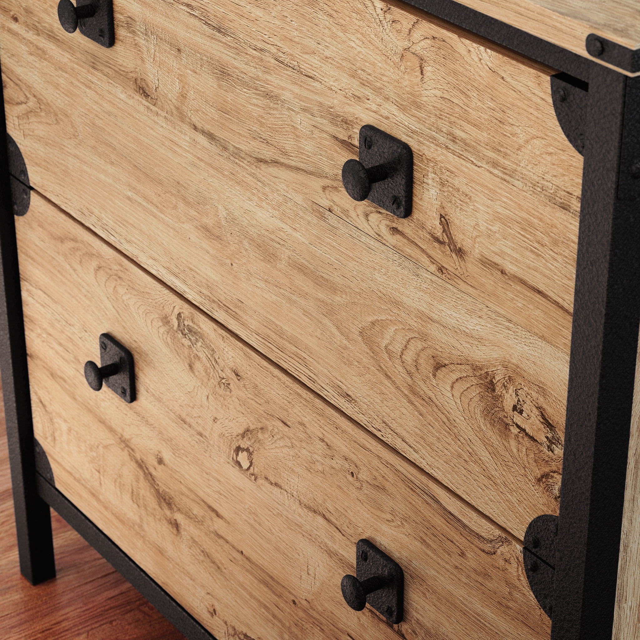 Upgrade your home office, or any room you choose, with the industrial feel of the lateral file cabinet from the Steel River collection. This rustic file cabinet features a top surface for display of books, photos, or an accent lamp. The top also makes a great spot to place your printer. The rustic-industrial design makes this 2-drawer lateral file cabinet authentic and stunning while equipped with drawers with full extension slides that hold letter or legal-size hanging files. This wood lateral file cabinet also includes an interlocking safety mechanism that only allows one drawer to open at a time. Finished on all sides for versatile placement in any room of your home, this lateral file cabinet will look great no matter how you arrange it. A textured, powder coated metal frame and corner accents with a Milled Mesquite finish round out the design of this industrial file cabinet. Forget what you know about filing cabinets, including the plain Jane beige metal variety because this wood lateral file cabinet will make you forget youre supposed to be working.