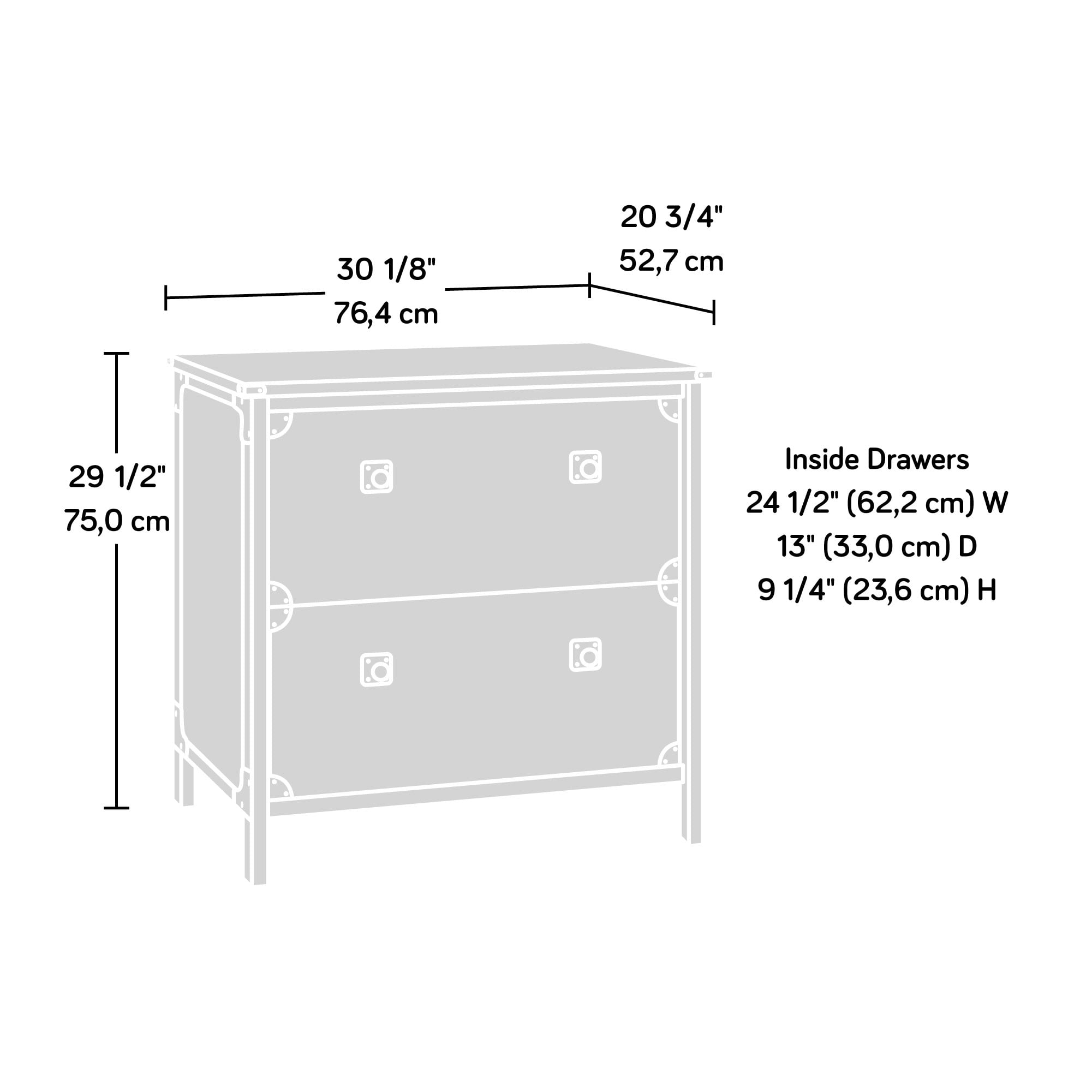 Assembled Dimensions: 30.08″ L x 20.75″ W x 29.53″ H Drawers with full extension slides hold letter or legal-size hanging files Interlocking safety mechanism allows only one drawer open at a time Detailed with a textured, powder coated metal frame and corner accents Finished on all sides for versatile placement in any room of your home Finished in Milled Mesquite” Model #: 427655 Box Dimensions: 35.43″ L x 23.75″ W x 7.28″ H For additional questions or any issues, please contact the manufacturer at 1-800-523-3987. Be sure to check out the Sauder Steel River collection for more great items!