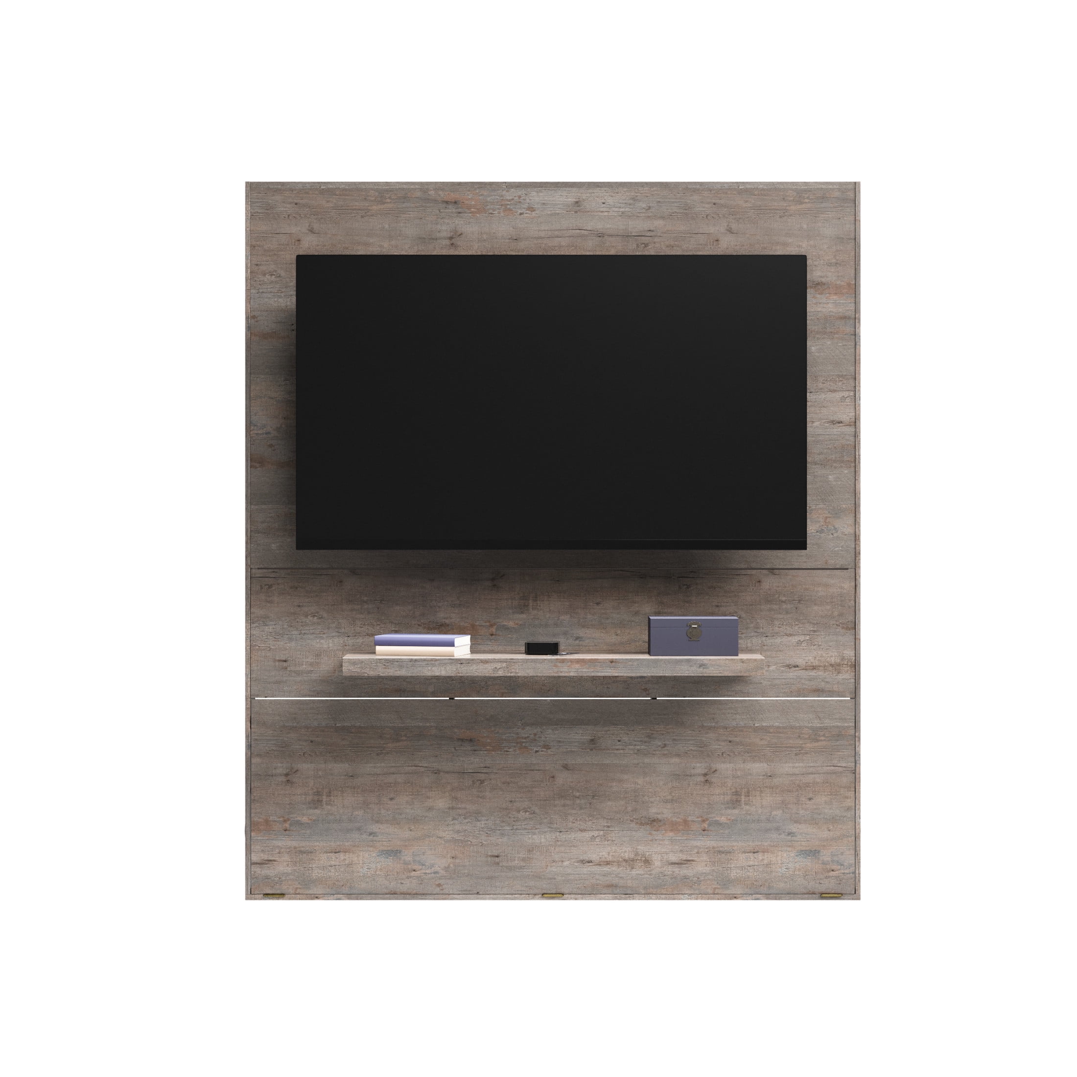 Assembled dimensions: L: 71.97″ x W: 17.44″ x H: 84.06″ Unit attaches to wall but also rests on floor for added support TV bracket holds up to a 70″ TV weighing 70 lbs or less Floating shelf for components Includes dimmable LED lights with multiple modes Cable management with pivoting door below shelf for cord and outlet access Weathered Wood finish Model #: 430565 Box 1 Dimensions: 86.22″ L x 14.57″ W x 5.12″ H Box 2 Dimensions: 74.02″ L x 17.72″ W x 4.02″ H For additional questions or any issues, please contact the manufacturer at 1-800-523-3987. Be sure to check out the Sauder Steel River collection for more great items!