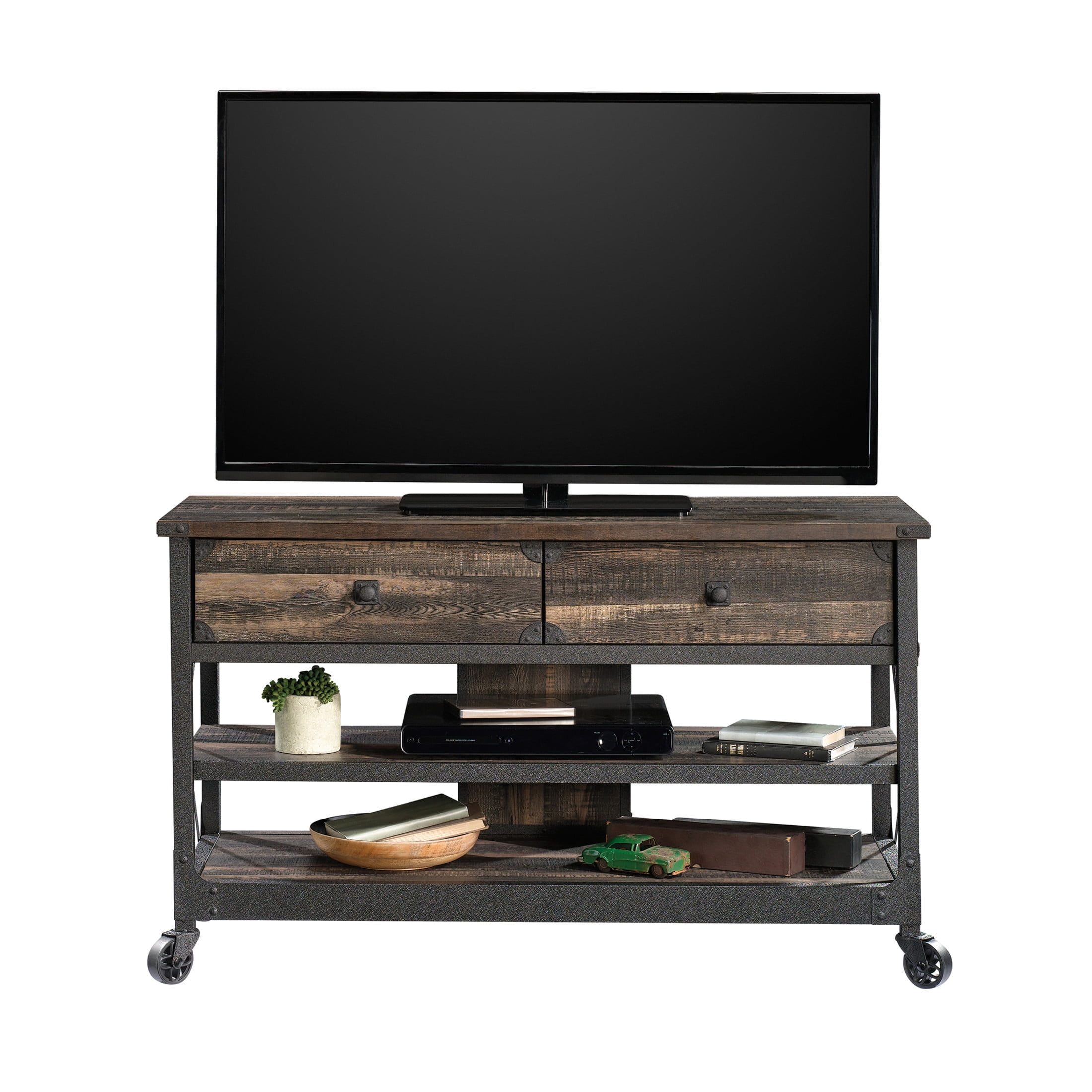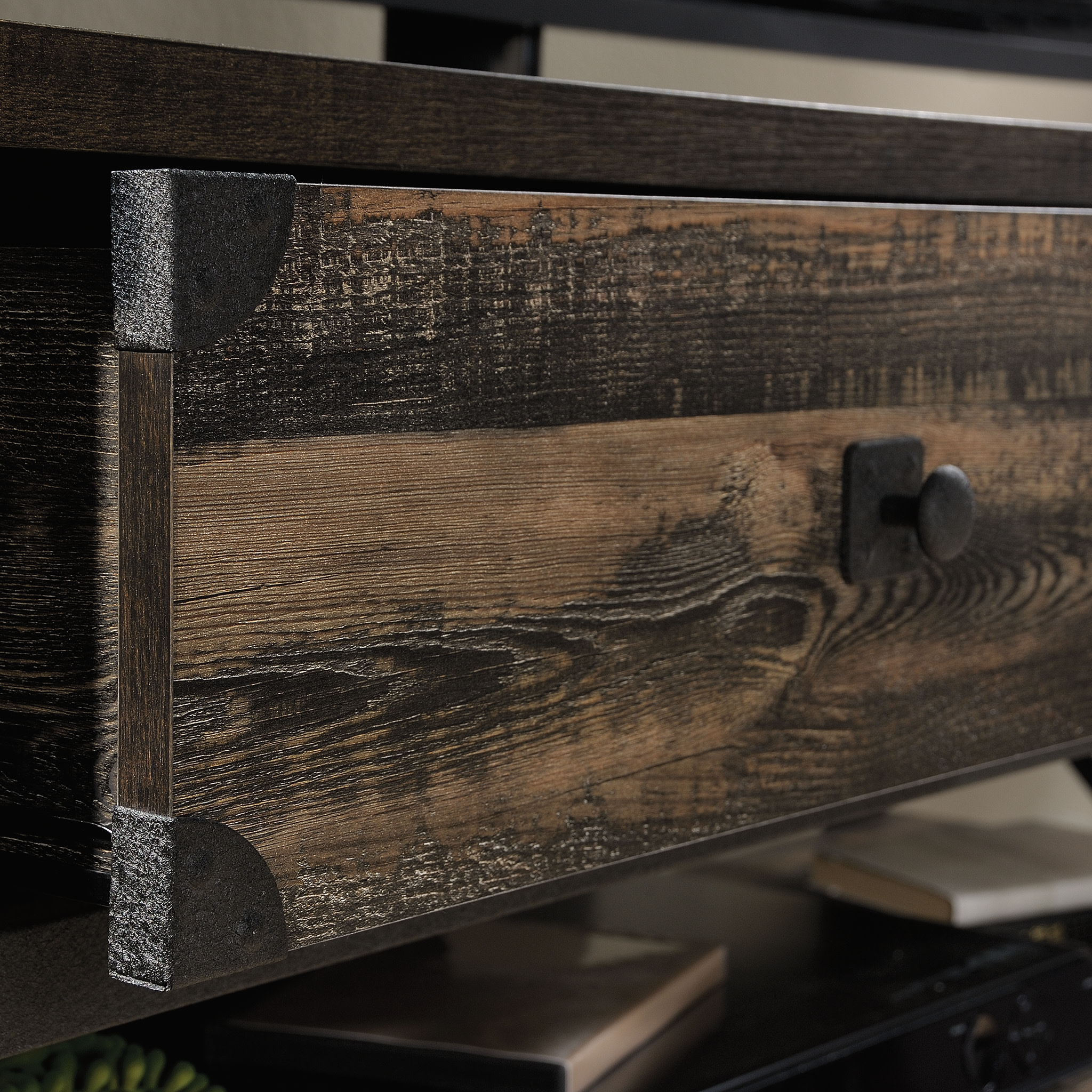 Sauder Steel River TV Stand for TVs up to 52″, Carbon Oak Finish