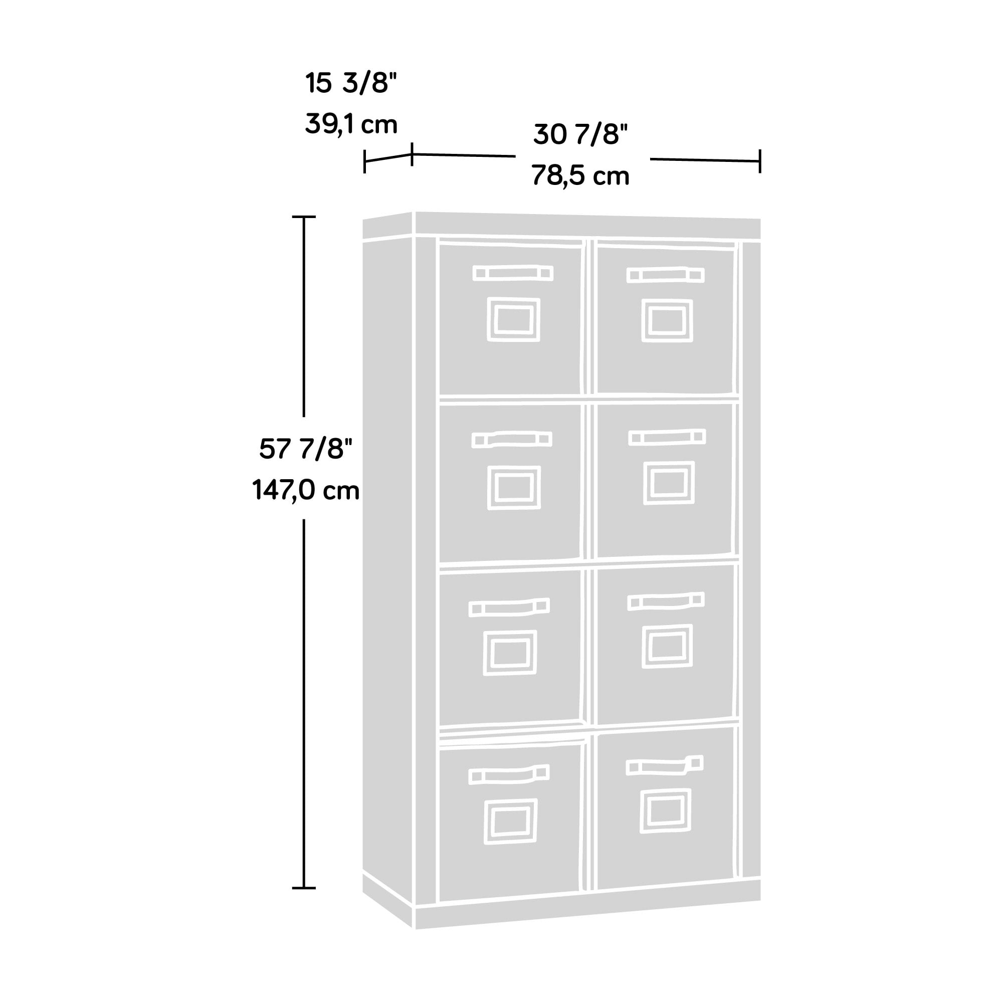 Assembled Dimensions: 30.91″ L x 15.39″ W x 57.87″ H Versatile design creates endless storage options Horizontal or vertical display to accommodate the size of your space Cubbyhole storage for books, games, and more Includes eight fabric storage bins for hideaway storage Finished in White Model #: 429359 Box Dimensions: 61.42″ L x 17.91″ W x 10.43″ H For additional questions or any issues, please contact the manufacturer at 1-800-523-3987. Be sure to check out the Sauder Stow-away Cube Storage collection for more great items!