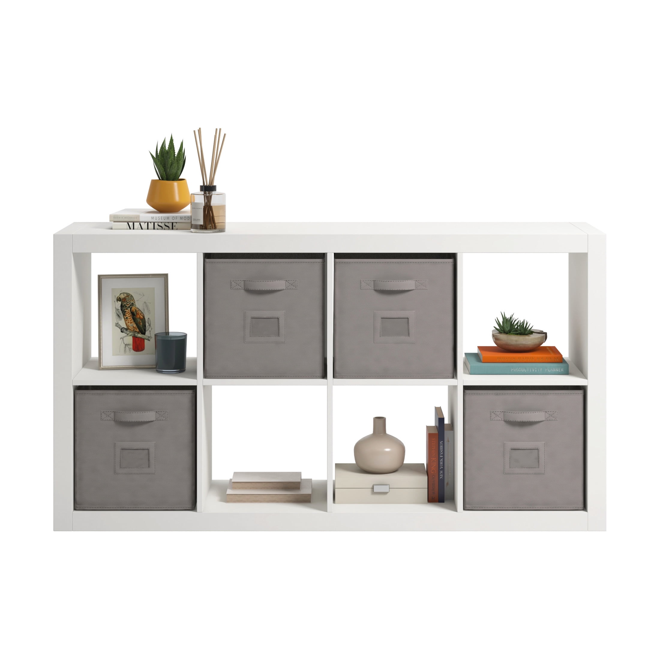 Its storage season again! Wait, the storage season never stops. Whether you need a place for those Christmas decorations, extra linens, toys or board games, the 8-cube organizer from the Stow-Away collection is the perfect storage solution. This 8-cube organizer was designed with versatility in mind. It can be used horizontally or vertically to accommodate what best works for your home and storage needs. This tall storage bookcase includes eight fabric storage bins to create a clean hideaway storage look or can be used as an open storage cubby bookcase. Combine the two looks and alternate using storage cubes and open display space for a unique look. The possibilities are endless! This cube bookshelf works in any room of your home, storing decor, out of season decorations, cleaning supplies, books and so much more. This basket cubby storage solution is one of those items that youll appreciate for years to come. Finished in a clean White, this 8-cube storage bookshelf blends design and functionality perfectly into one optimal piece of furniture.