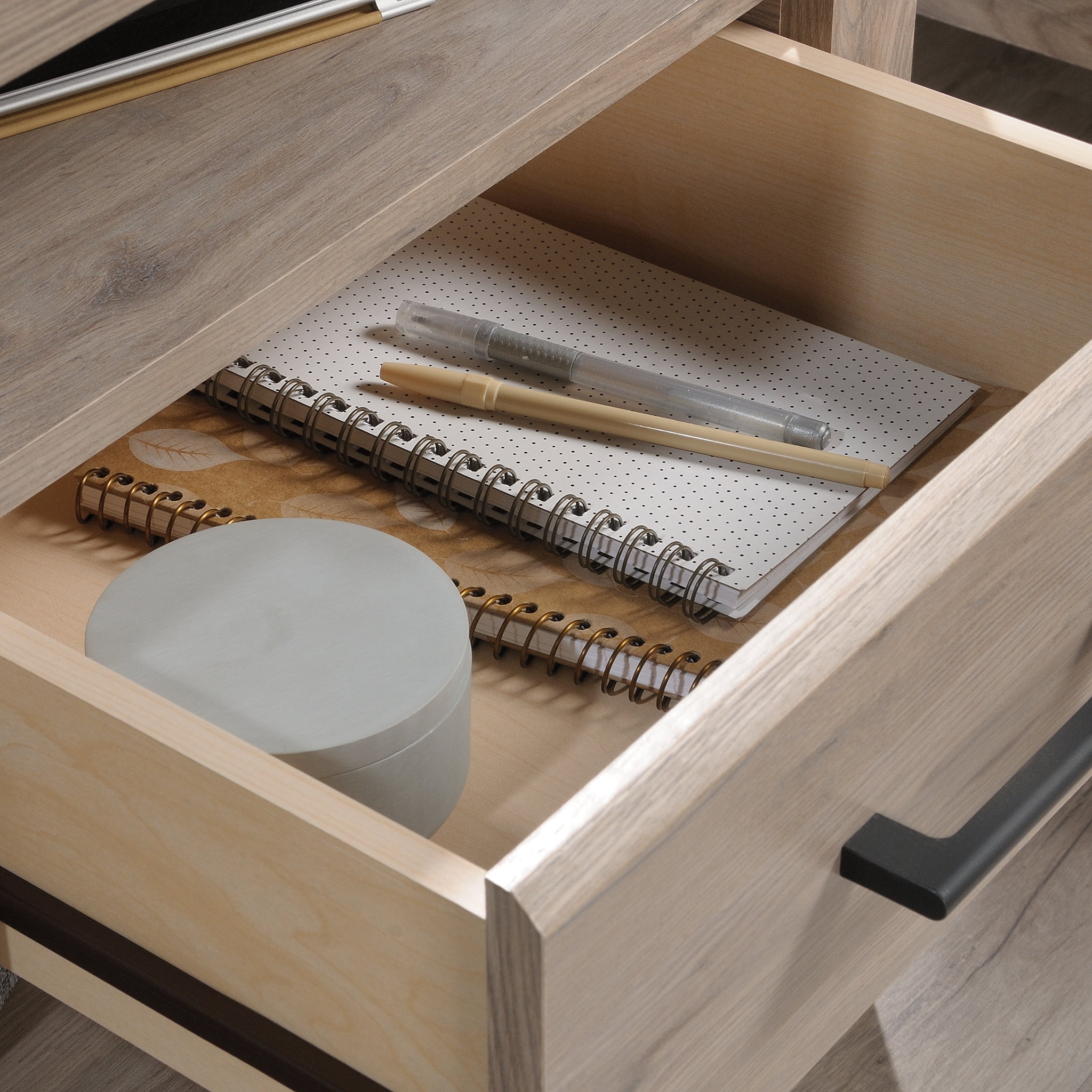 Assembled Dimensions: 21.26″ L x 17.13″ W x 24.02″ H Drawer features metal runners and safety stops to keep you and your family safe Two open shelves provide additional storage Tip restraint safety strap included because we care about you and your family Details include tapered feet and chamfered edges Finished on all sides for versatile placement anywhere in your home Patented T-lock assembly system for easy and more efficient assembly Laurel Oak finish Model #: 424873 Box Dimensions: 27.31″ L x 19.25″ W x 4.44″ H For additional questions or any issues, please contact the manufacturer at 1-800-523-3987. Be sure to check out the Sauder Summit Station collection for more great items!