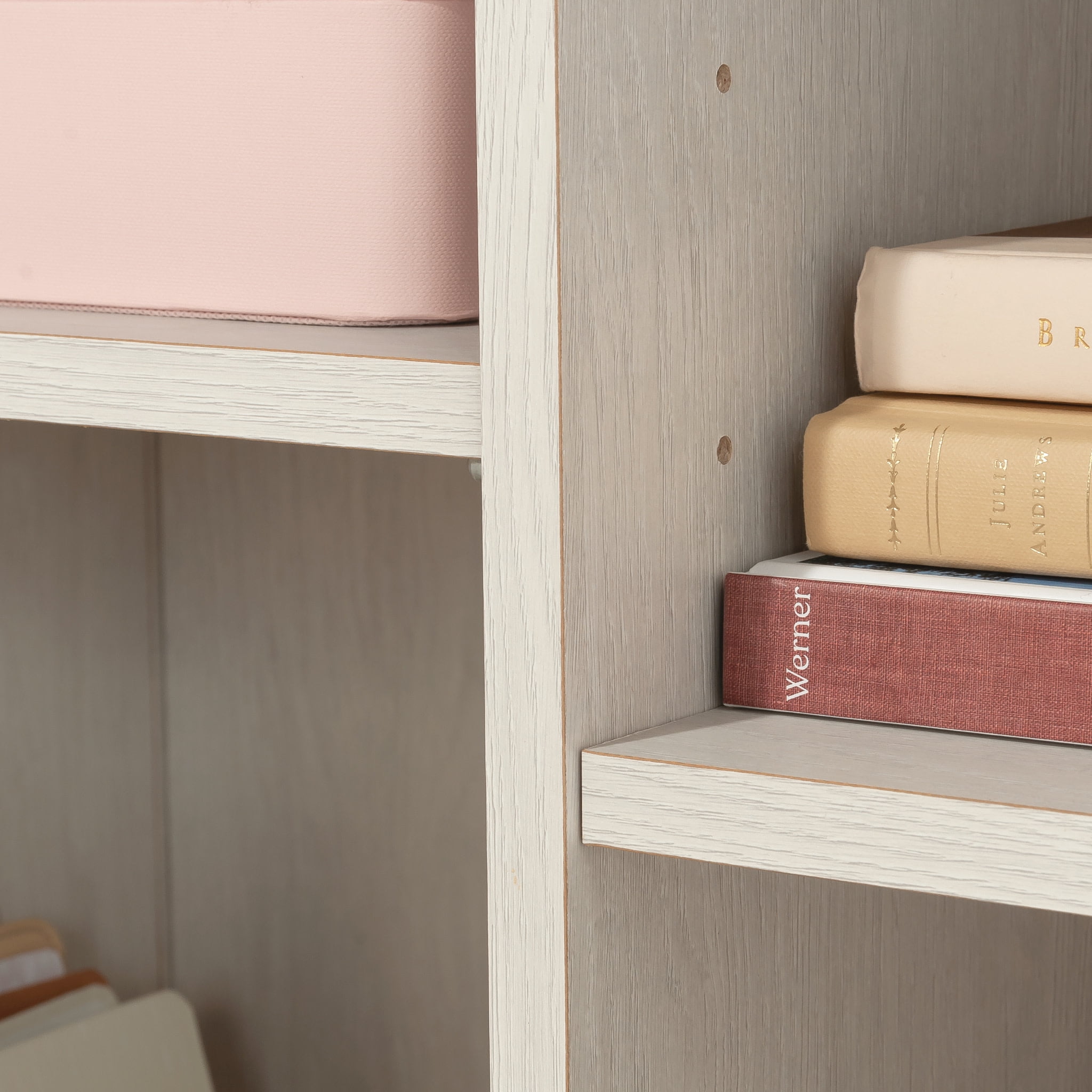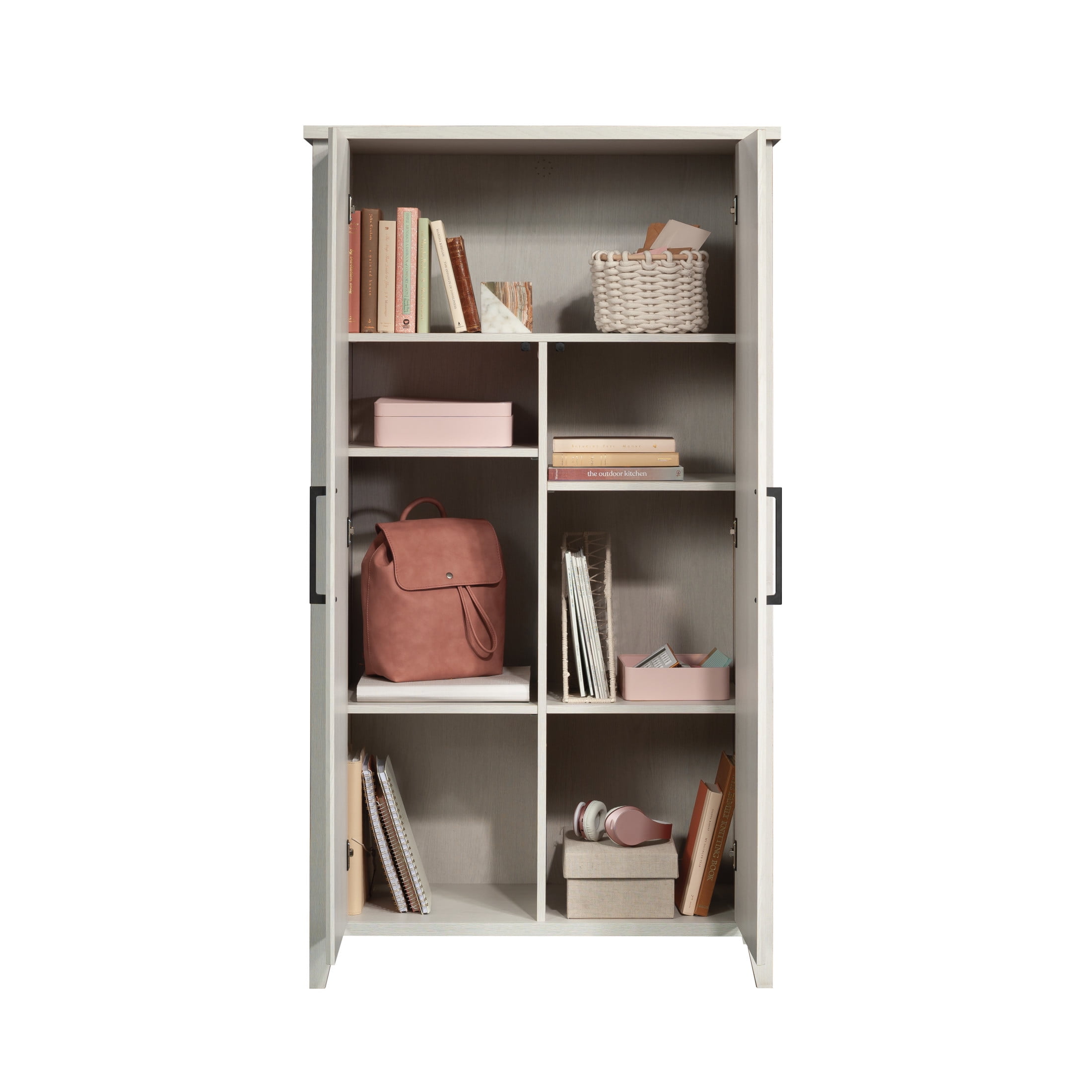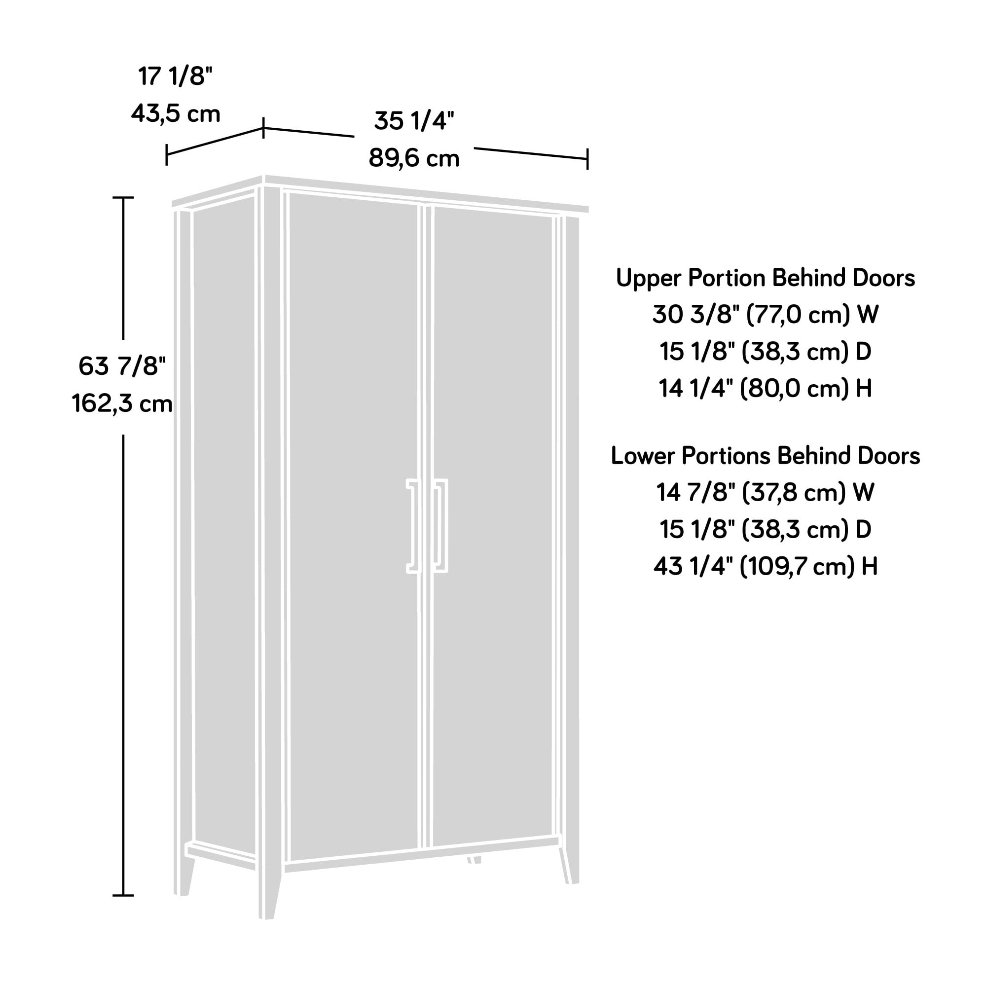 Assembled Dimensions: 35.28″ L x 17.13″ W x 63.90″ H Hidden storage behind doors helps conceal your clutter and chaos Four (4) adjustable shelves for flexible storage options Full upper shelf for additional storage Strong and lightweight panel construction Details include tapered feet and chamfered edges Glacier Oak finish Model #: 432001 Box 1 Dimensions: 67.38″ L x 15.63″ W x 3.56″ H Box 2 Dimensions: 47.63″ L x 17.75″ W x 5.5″ H For additional questions or any issues, please contact the manufacturer at 1-800-523-3987. Be sure to check out the Sauder Summit Station collection for more great items!