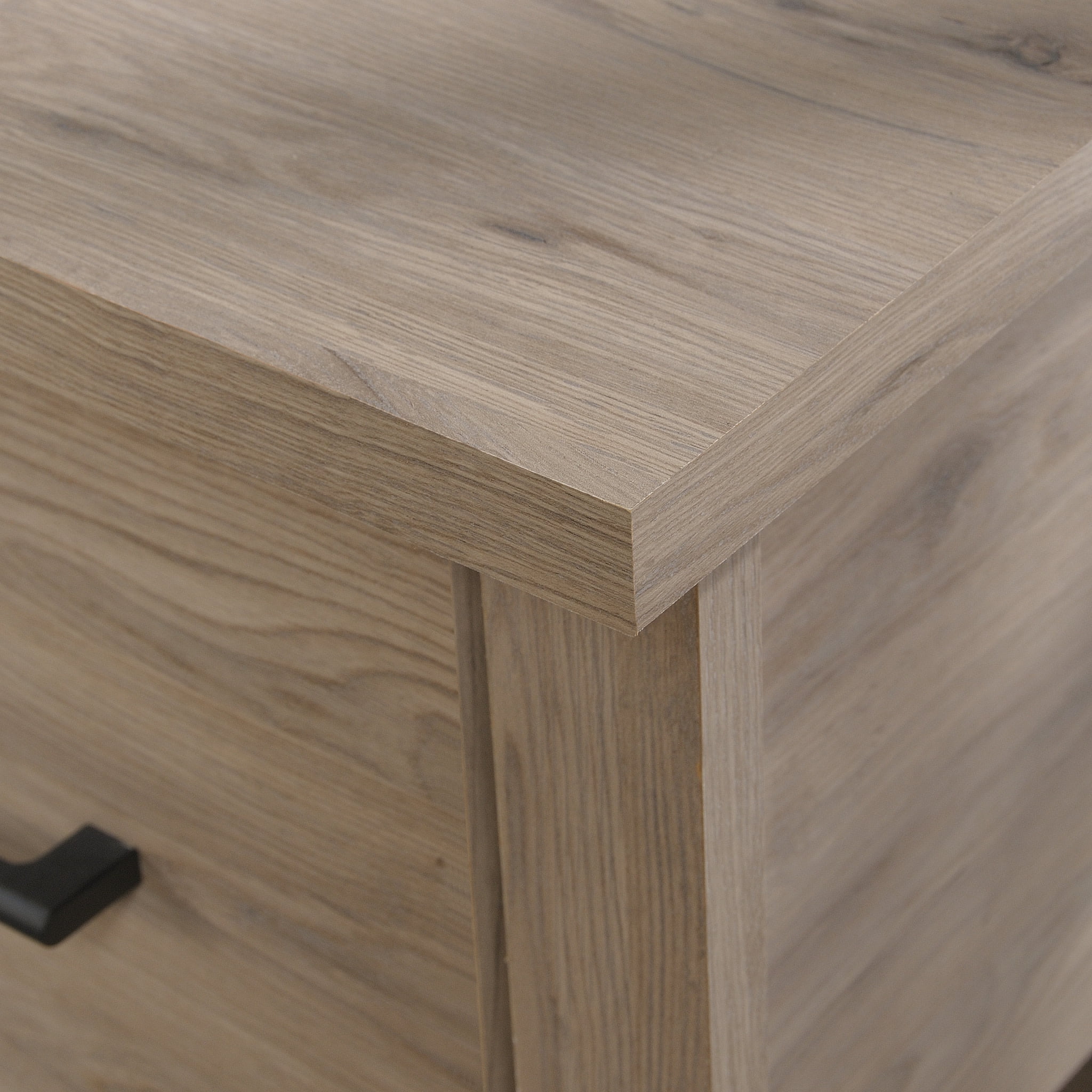 Whether its work on your next project or just simply writing out your grocery list, you need the perfect spot to do so. Create the convenient work space your home needs while adding the style that you love with this desk from the Summit Station collection. This single pedestal computer desk offers a spacious top surface that provides you with the space you need for office items like your laptop, stacks of notepads, folders and your hot cup of coffee. This home office writing desk features two drawers that open and close on smooth metal runners. The file drawer holds letter-size hanging files for extra organization. The lower open shelf provides you with additional storage space for miscellaneous items like organizing bins and home decor. Other features include a desk-top grommet hole for electrical cord access. This pedestal desk features a strong and lightweight panel construction and is detailed with tapered feet and chamfered edges. Finished on all sides in Laurel Oak, this small office desk is everything you need and more.