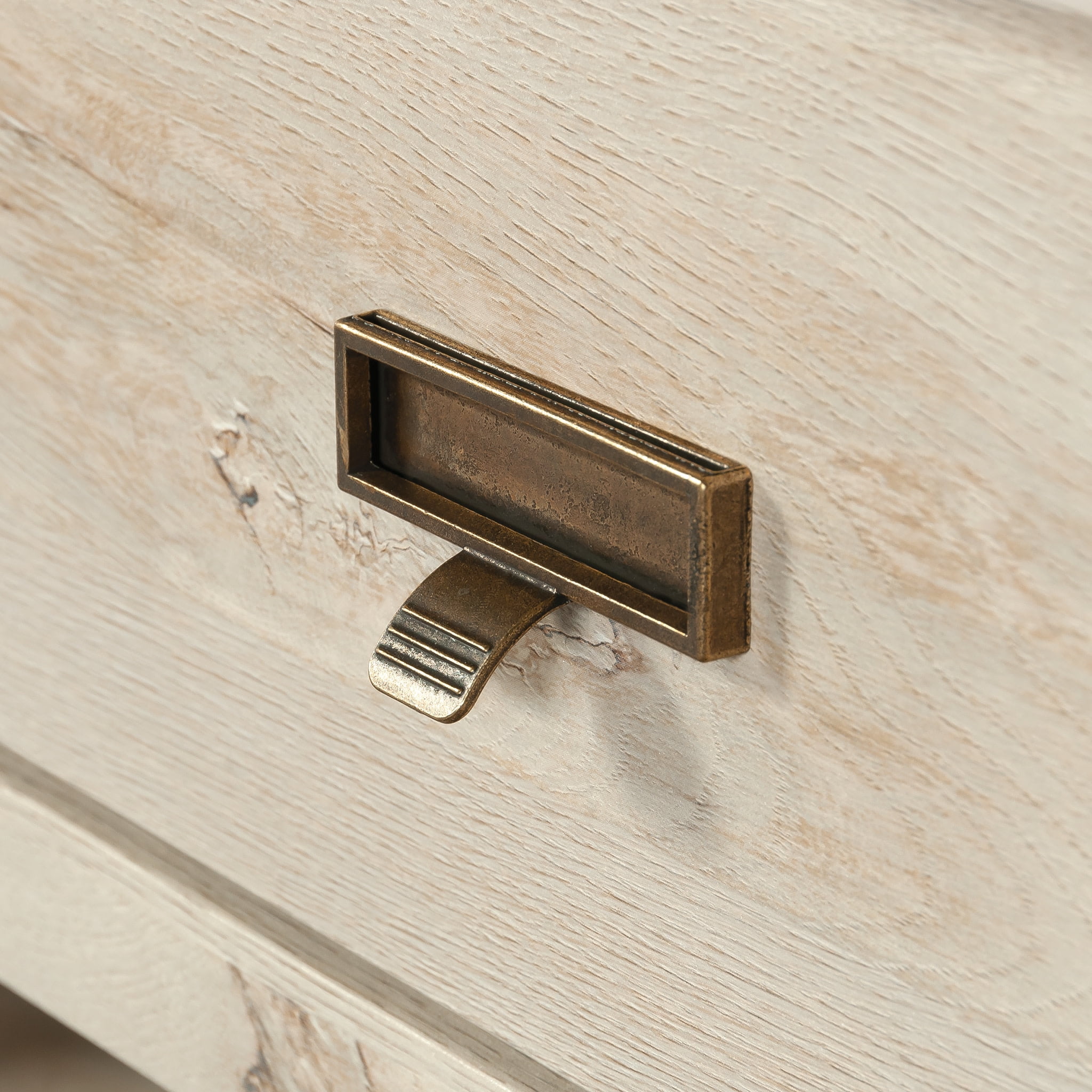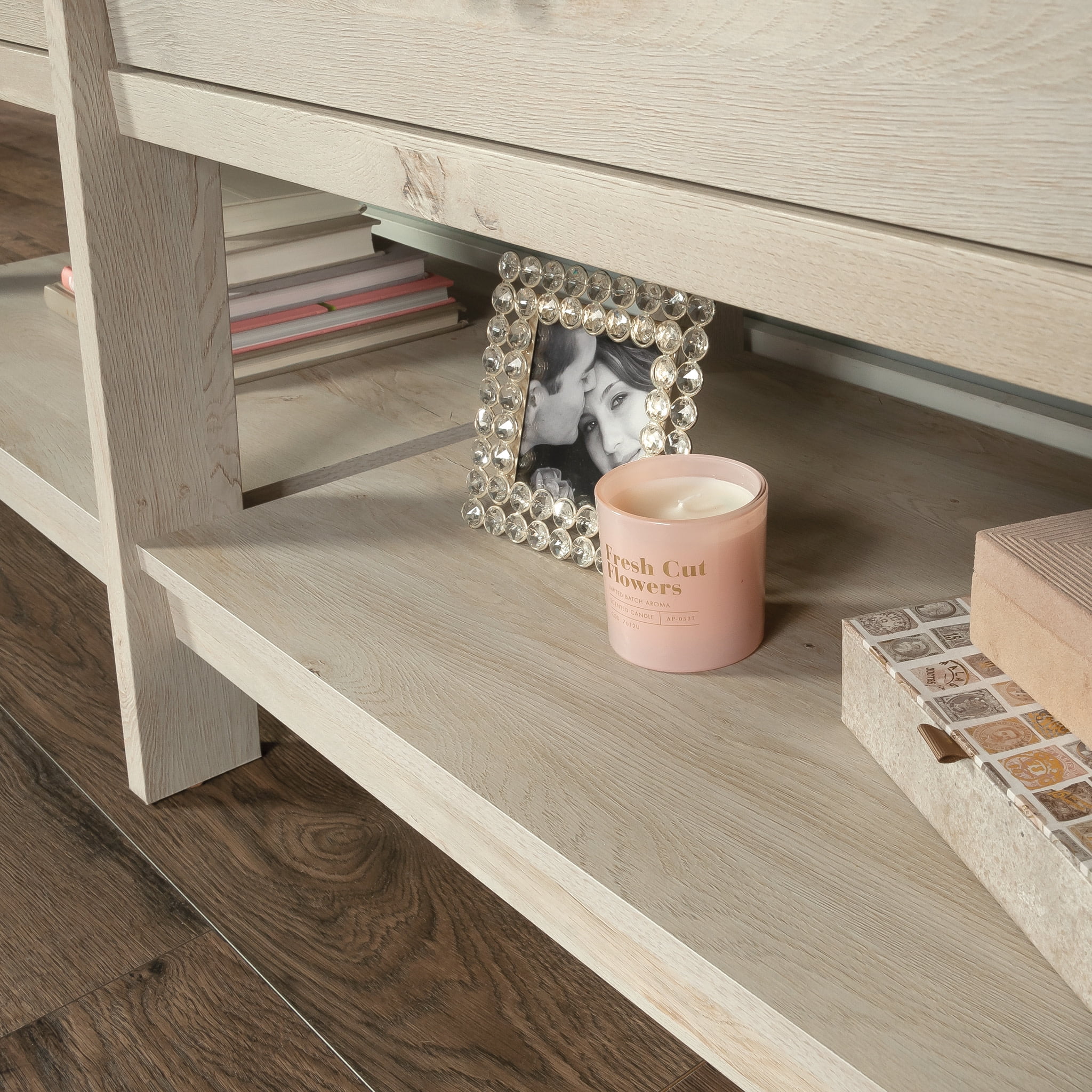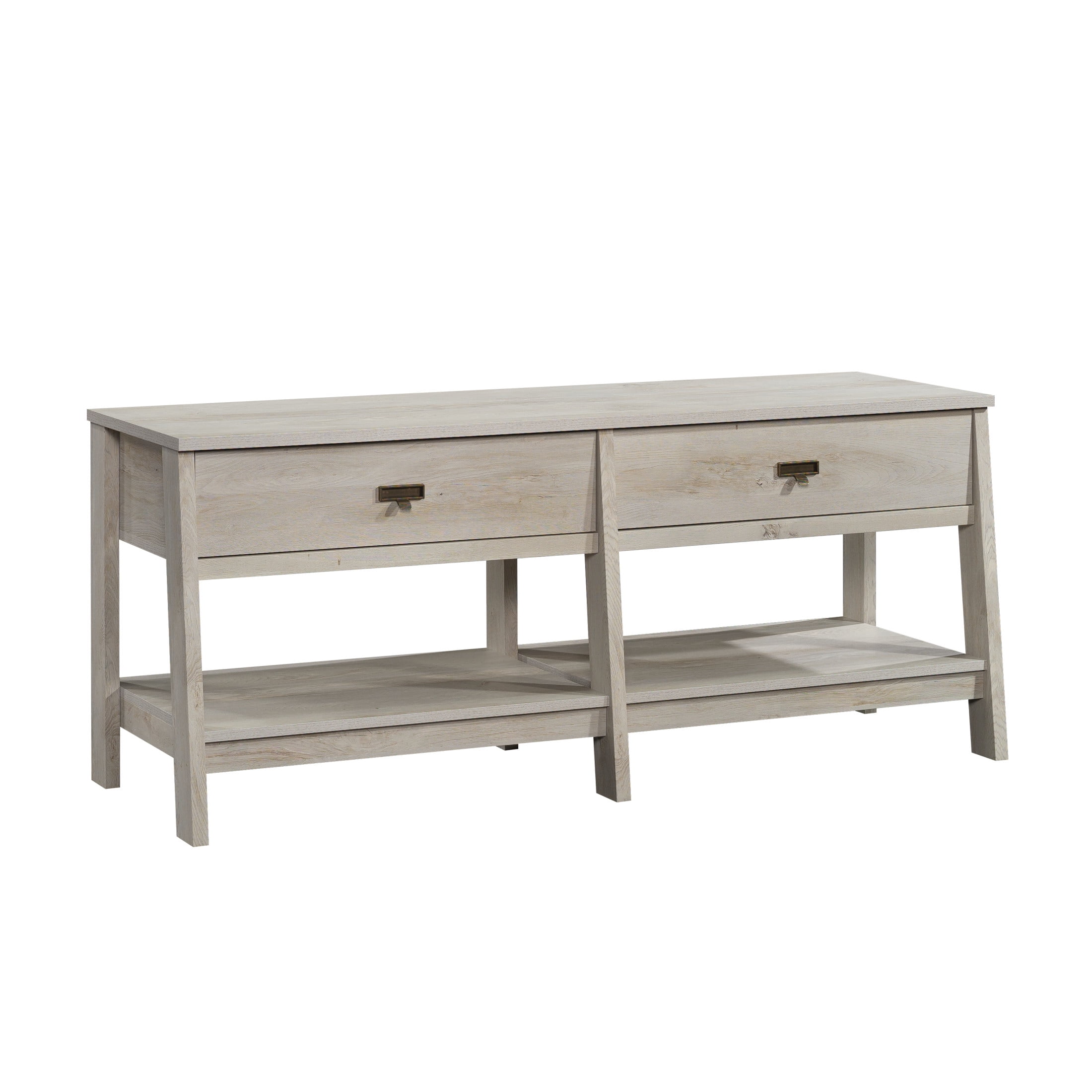 Sauder Trestle TV Stand with Drawers and Shelves for TVs up to 60″, Chalked Chestnut Finish