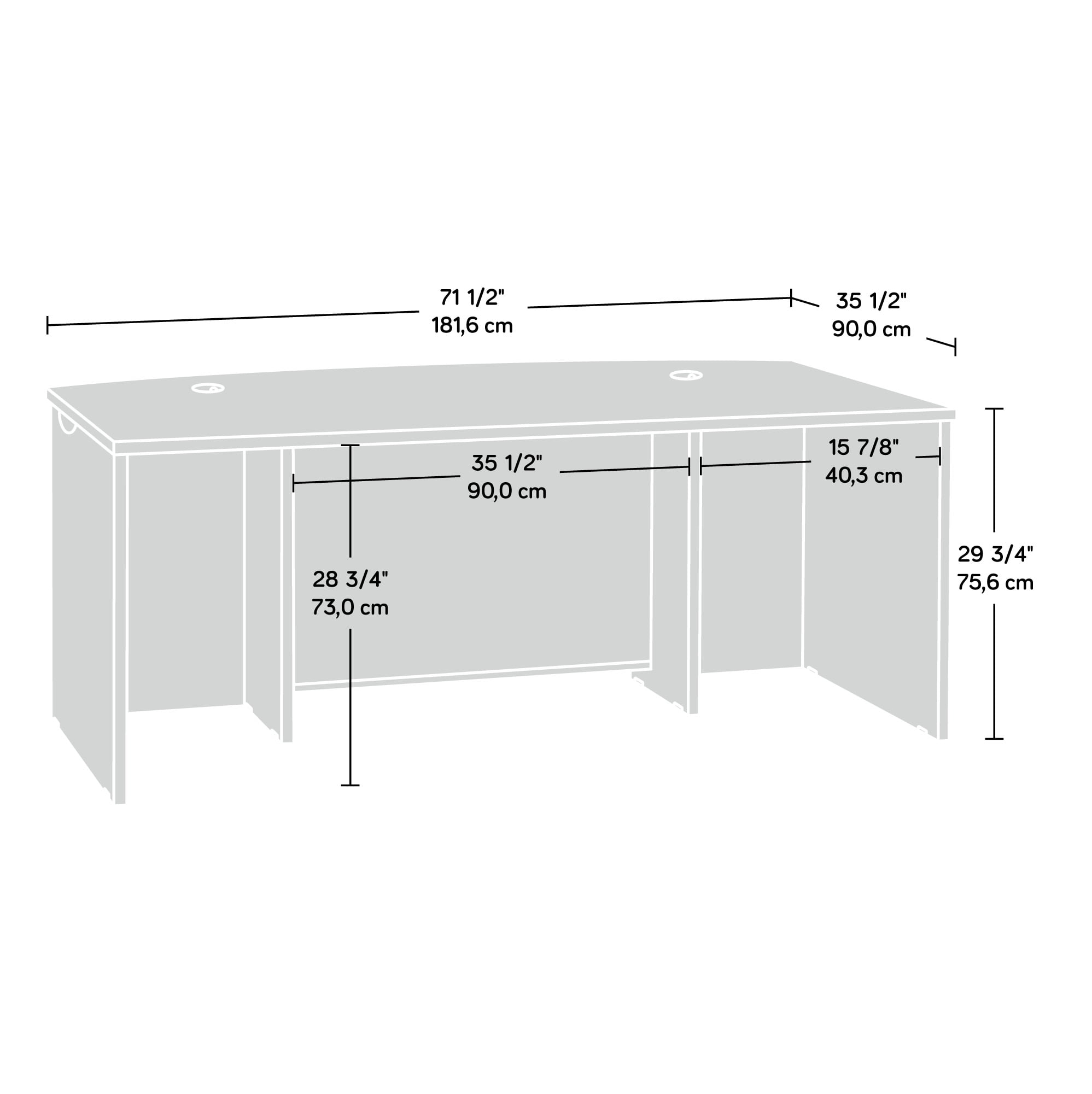 Assembled Dimensions: 71.5″ L x 35.43″ W x 29.76″ H This beautiful executive desk has an EverSheen top-coat that provides a clear, durable finish to resist heat, stains, and scratches Cord management system with two desk top grommet holes Adjustable levelers Meets BIFMA standard x5.5 for safety, durability, and structural performance Executive desk has a Classic Cherry finish with Soft Black accents Model #: 401447 Box Dimensions: 75.99″ L x 36.0″ W x 3.37″ H For additional questions or any issues, please contact the manufacturer at 1-800-523-3987. Be sure to check out the Sauder Via collection for more great items!