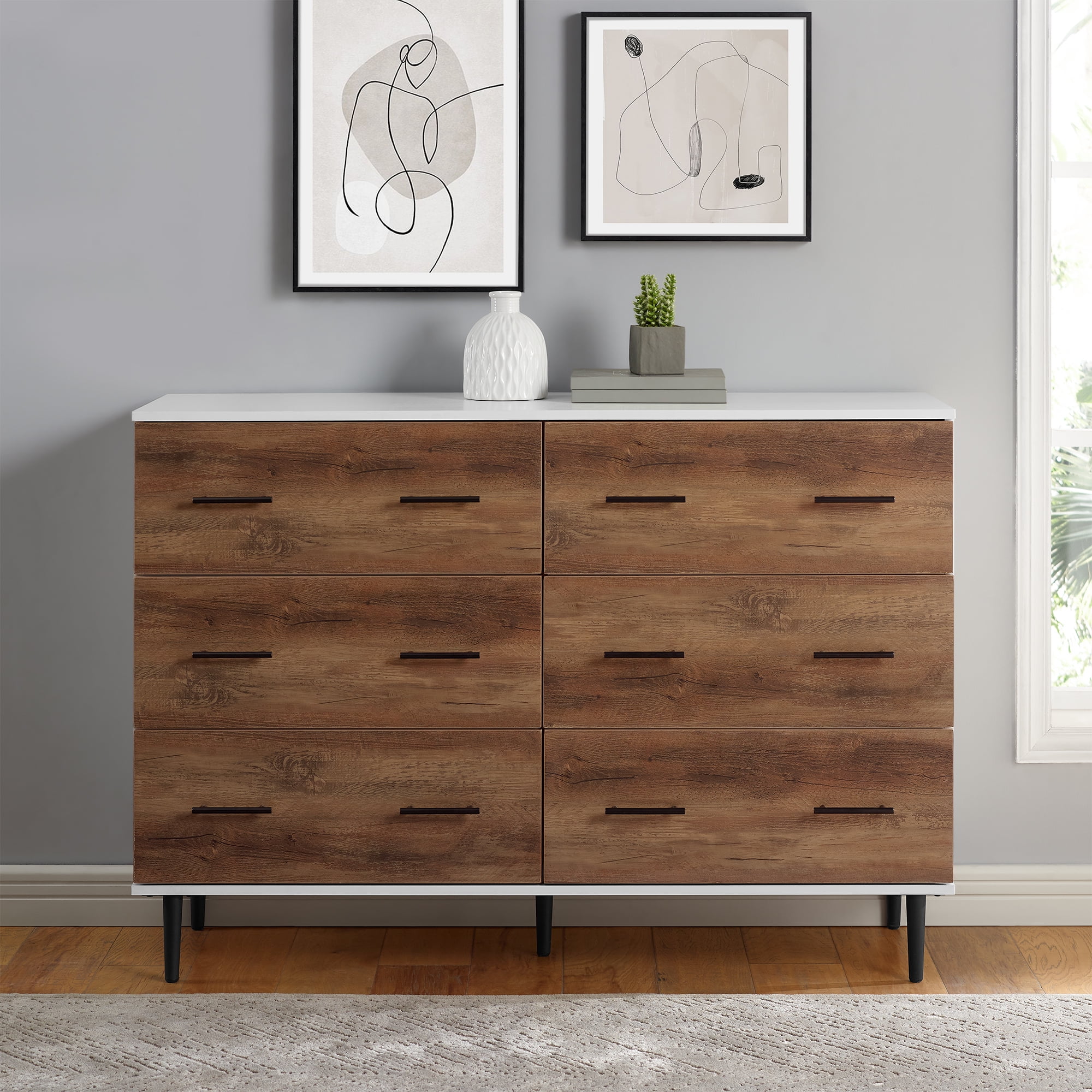 Savanna Modern Wood 6 Drawer Dresser – White/Rustic Oak