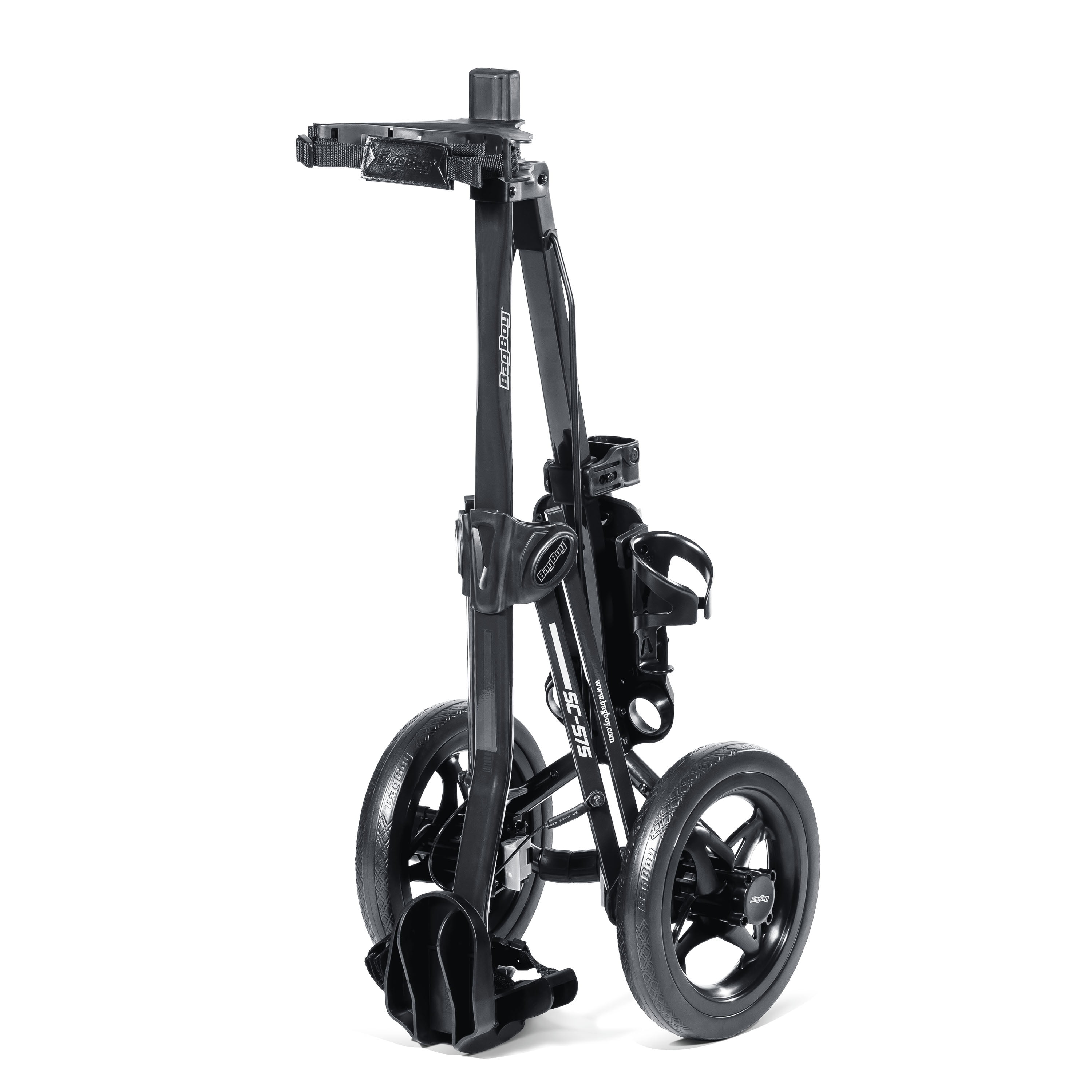 Effortlessly navigate the course with Bag Boy’s SC-575 Push Cart. The adjustable handle fits golfers of all heights and also features a scorecard holder with a built-in tee and ball holder. This push cart is made with ultra lightweight aluminum tubing, making it easily transferrable from course to course. Its silver-black color combination gives it a professional look on the course.