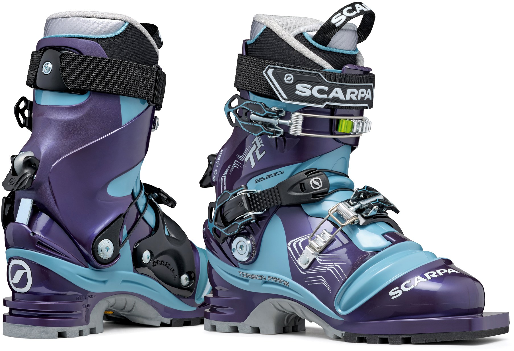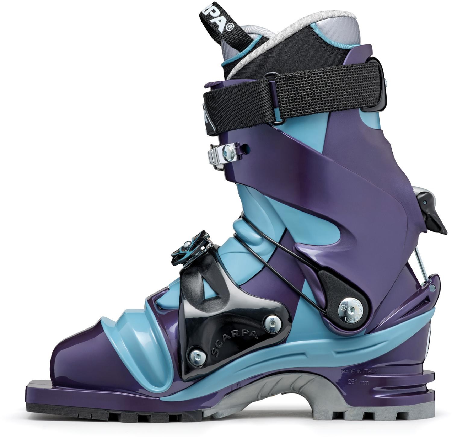 • Scarpa T2 Eco telemark ski boots for women are the ultimate do-anything tele boots, delivering versatile performance on everything from front-side groomers to backcountry powder.