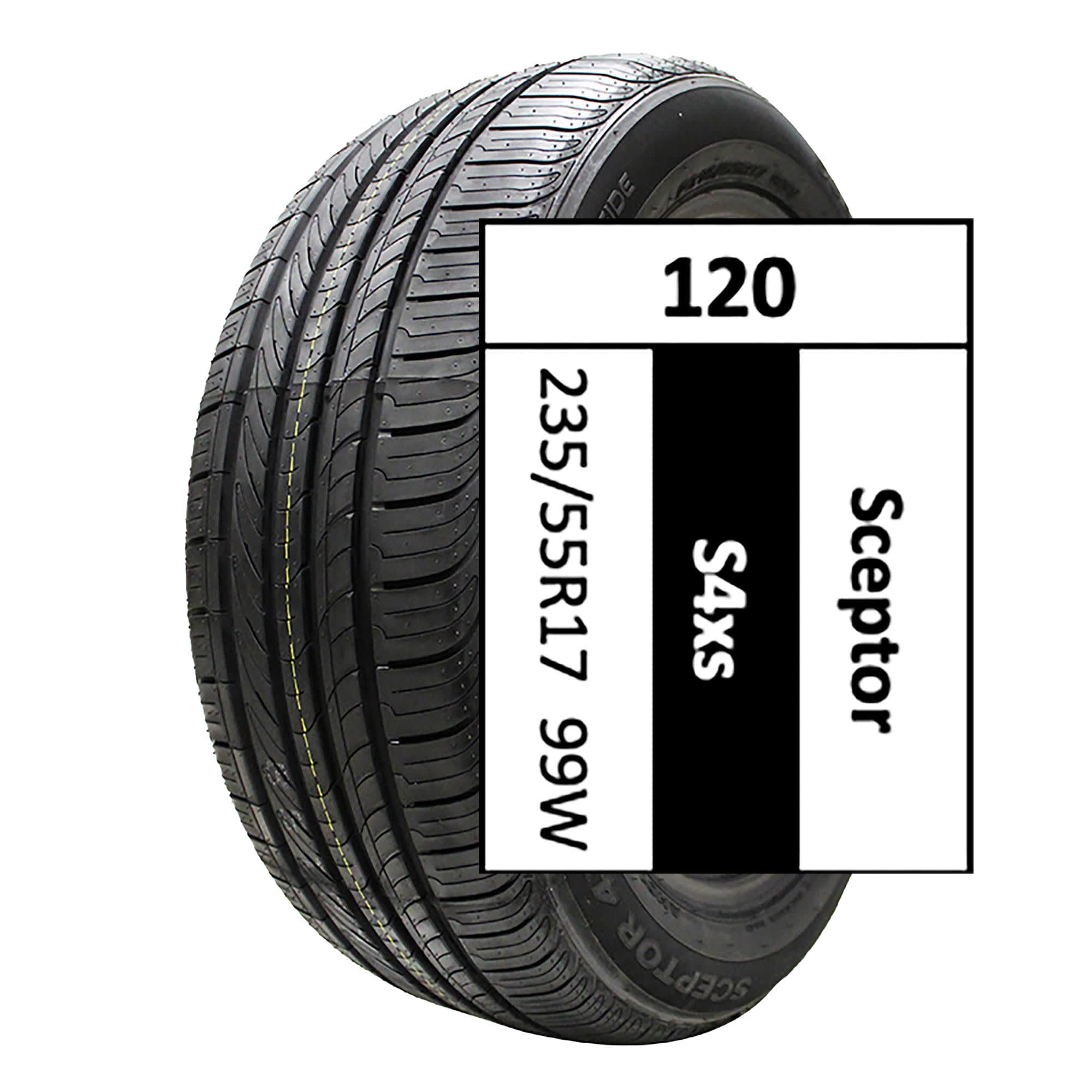 Sceptor 4XS All-Season 235/55R17 99W OVERVIEW Designed for sedans, coupes, CUVs, and SUVs, the Sceptor 4XS is an all-season performance tire that offers great value and quality, and has an innovative tread design for commendable year-round traction. The four straight wide grooves of the 4XS ease water dispersion and reduce the chances of aquaplaning for solid wet traction, and the tire’s cutting-edge tread design is optimized for better all-season performance. The advanced siping technology of the 4XS helps in achieving traction on both wet and dry surfaces, and the tire’s solid tread compound along with the tire design help in achieving longer and even wear.