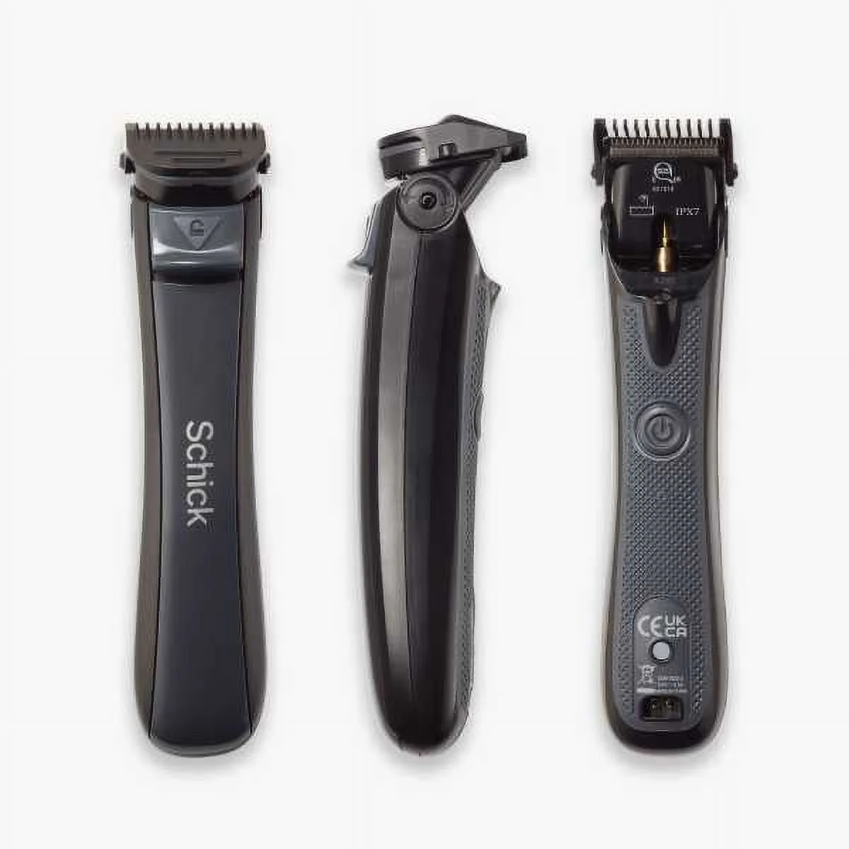 FLEXES & PIVOTS—Unique pivoting head locks into 5 different positions (up to 95 degrees) giving you the perfect angle to trim any part of your body. TRIM WITHOUT WORRY—Blade safety guard protects skin from nicks & cuts giving you the freedom to comfortably and confidently groom even those delicate areas like “down there.” NO EXTRA ATTACHMENTS— Specially designed for easy rinsing with a built-in adjustable comb that lets you choose from 3 lengths without the need for extra attachments. EXPERT CONTROL—Waterproof body shaver can be used in and out of the shower and features a built-in LED light and rubber no-slip grip, so you can easily navigate your nether regions. TRAVEL-READY—Portable body hair trimmer includes a USB charger and a travel pouch. Schick Ultra Pivot Cordless Men’s Electric Body Trimmer, 1 CT, Waterproof Men’s Electric Body Shaver