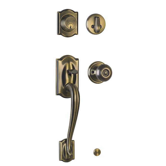 This Schlage handleset features a decorative deadbolt, matching exterior handleset grip and interior passage door knob or lever. Offering premium construction combined with a sleek design and industry-leading warranty, this is the perfect door handleset for your customized entryway. Trust your home to Schlage, makers of high-quality, innovative door hardware for over 100 years.