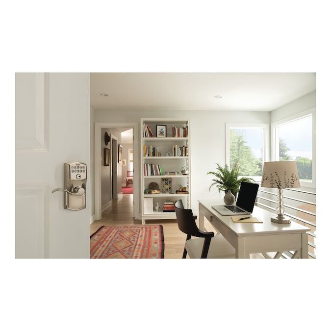 Keypad lever offers convenient keyless access. Accent lever design features subtle curves to compliment a wide range of styles from traditional to contemporary. The warm silver tones of Satin Nickel complement light and dark wood grains in addition to a broad spectrum of colors.