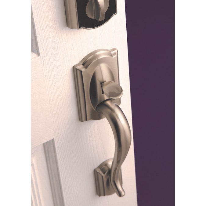 Schlage Camelot Satin Nickel Entry Door Handleset with Accent Lever