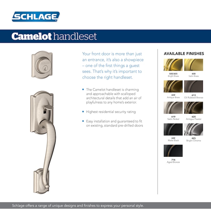- TRUSTED WARRANTY: Schlage locks are backed by a limited lifetime mechanical and finish warranty; see Schlage warranty for full details