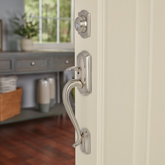 - EASY INSTALLATION: Replace an existing front door handle yourself with no skill required; self-aligning screw holes make installation easy and hassle-free; install in minutes with only a screwdriver; includes lockset and 2 keys