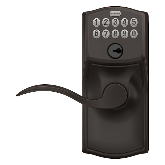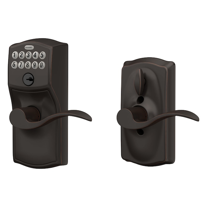 The Schlage Accent Keypad Lever with Camelot Trim in Aged Bronze is perfect for use on front doors, garage entry doors, and side and back doors. With a keypad lever, you can control entry to your home more easily and securely, and our Flex – Lock feature allows you to set the lock to automatically re – lock after 5 seconds of inactivity. No more hiding keys under the doormat or losing track of copies – just use access codes that can be created or deleted in seconds. The Accent lever is widely popular for its elegant wave – like design that effortlessly matches a home’s style without overshadowing it, while the Camelot trim’s scalloped architectural details add charm to any home. Our Aged Bronze finish is inspired by traditional design, featuring warm, copper tones that break through its darker, aged exterior. Plus, it’s been designed and tested with strength and durability in mind.
