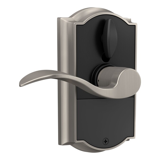 With the Schlage Touch™ Keyless Touchscreen Accent Lever with Camelot Trim in Satin Nickel, there’s no key to lose, no re-keying or cutting new keys – no keys at all, thanks to our cylinder-free design. You can finally go for a run or take the dog for a walk without juggling keys or stuffing them in your sock. All in a slim profile and stylish trim that pairs perfectly with interior hardware. The Accent lever is widely popular for its elegant wave-like design that effortlessly matches a room’s style without overshadowing it, while the Camelot trim’s scalloped architectural details make any room charming and approachable, especially when wrapped in our versatile Satin Nickel finish. Plus, it’s been designed and tested with strength and durability in mind.