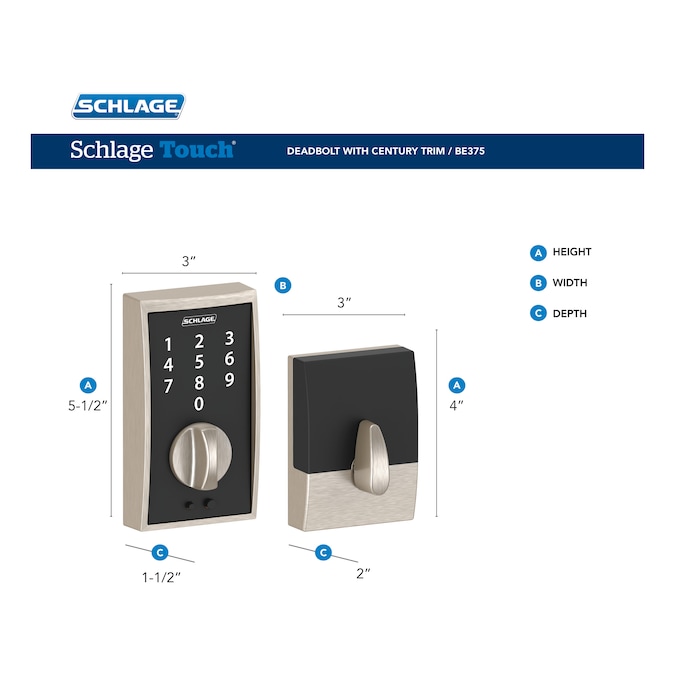 The Schlage Touch Keyless Touchscreen Deadbolt provides convenience with peace of mind for homeowners with an active lifestyle and busy families on the move. Simplify your life and do more with a keyless electronic lock. Go for a run without the weight of keys slowing you down or let the housekeeper in even when you’re not at home. This entry door lock offers premium security combined with a sleek design and an industry-leading warranty, so you’ll feel good when you trust your home to Schlage.