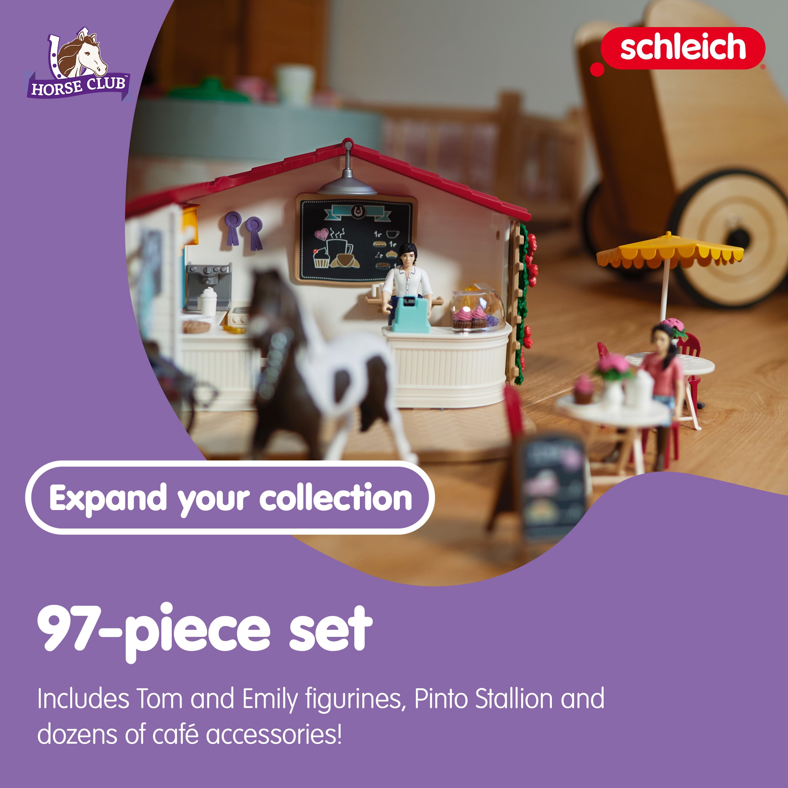 The Riding Café adds to the Horse Club playscape, which includes the Lakeside Riding Center, the Caravan for Secret Club Meetings, and other imaginative playsets (each sold separately). Includes a café menu board, baked goods, kitchen appliances, a coffee machine, a register and other accessories for hours of play and storytelling What will Tom and Emily discuss over pastries at the Rider Café? A riding adventure on the trails? New menu ideas for the café? The possibilities are limitless!