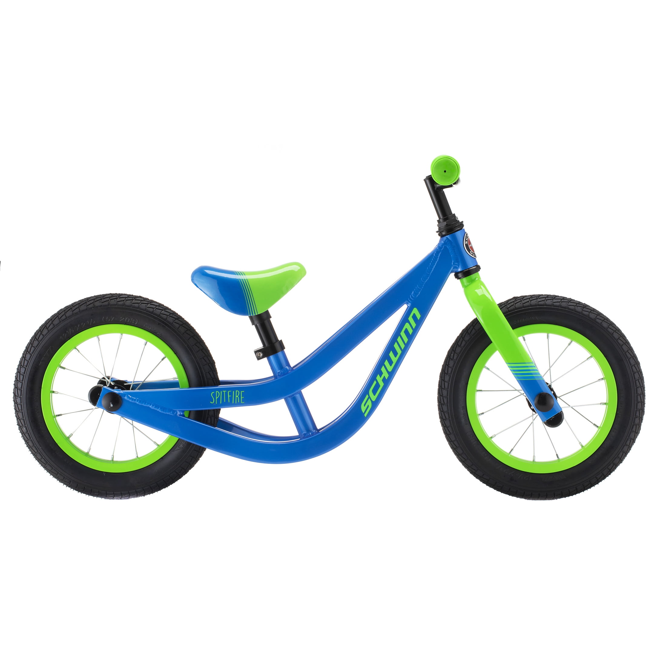 Make learning to ride easier and more fun with the Spitfire balance bike by Schwinn. This unique balance bike helps your child learn to ride by putting the focus on balance. Your child starts by siting on the seat with their feet on the ground, pushing themselves along. Soon their strides will become longer and longer until they’re gliding along just as they would on a standard bike. The Spitfire also has some pretty cool ergonomic features. For example, the low step-through design makes it easy to get on and off the bike, while enclosed axle nuts provide increased safety. The Spitfire’s saddle is tailor made for children to use a walk/running motion comfortably. Plus, the small diameter handlebar and grips are easy for little hands to control. Like all Schwinn bikes, the Spitfire comes with a limited lifetime warranty for as long as you own the bike. Make learning to ride a blast with the Spitfire by Schwinn. See our products in action.