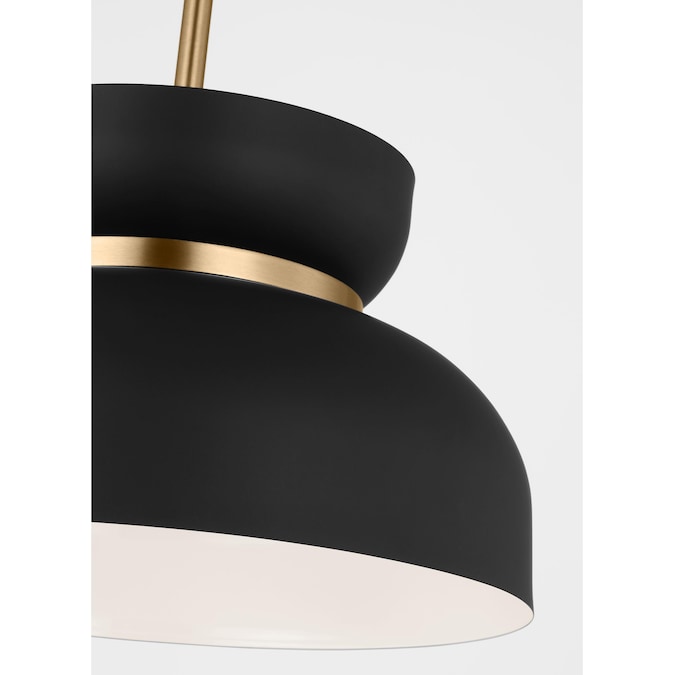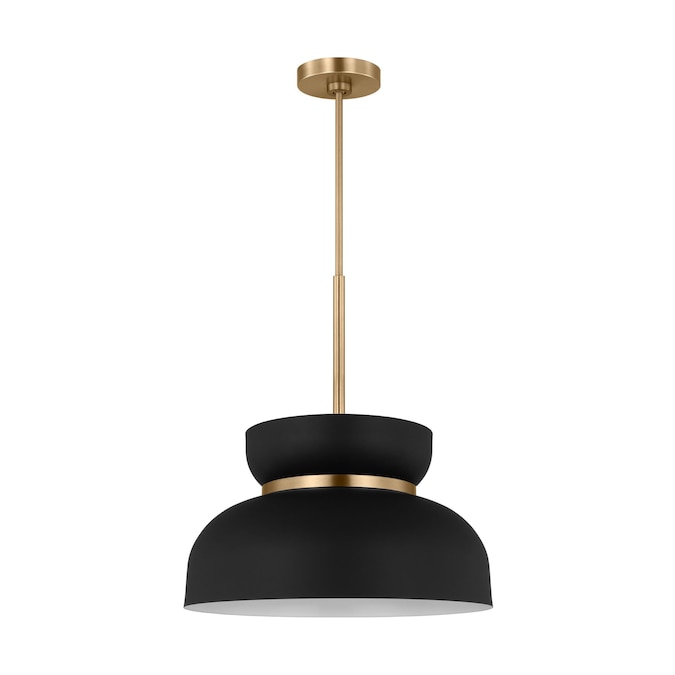 Defined by its modern, cinched silhouette, the Scott Living Pemberton Medium Pendant adds a sleek look with a touch of retro style through its dome-like metal shade and burnished brass metal accents. Available in two finishes, Midnight Black and Matte White, the Pemberton looks great on its own or when grouped in multiples. This product may be mounted on a sloped ceiling and is cETL listed for damp locations, making it the perfect lighting solution for any space.