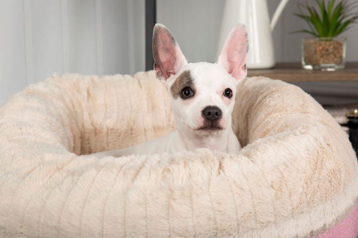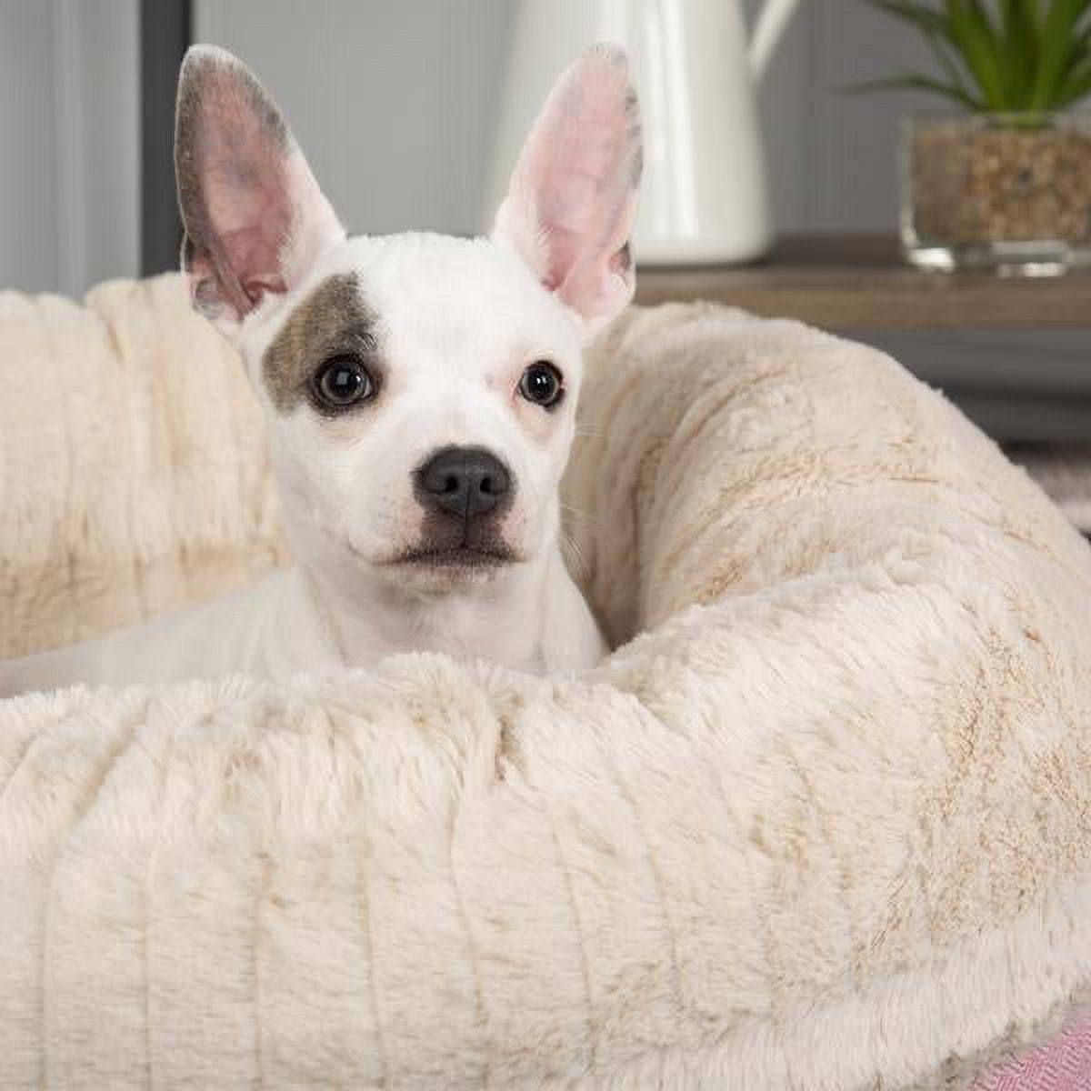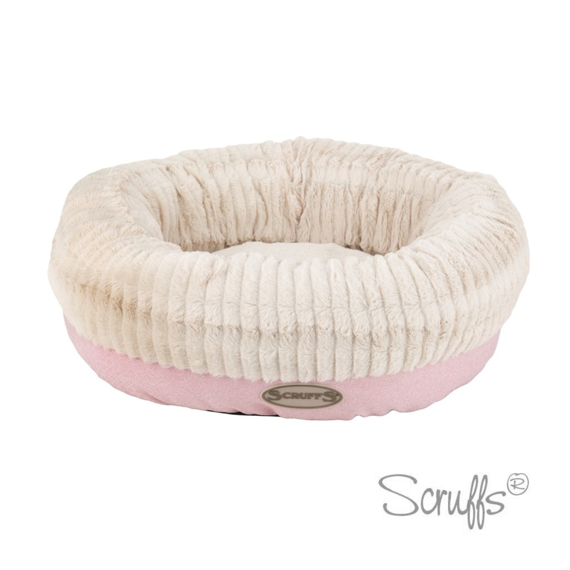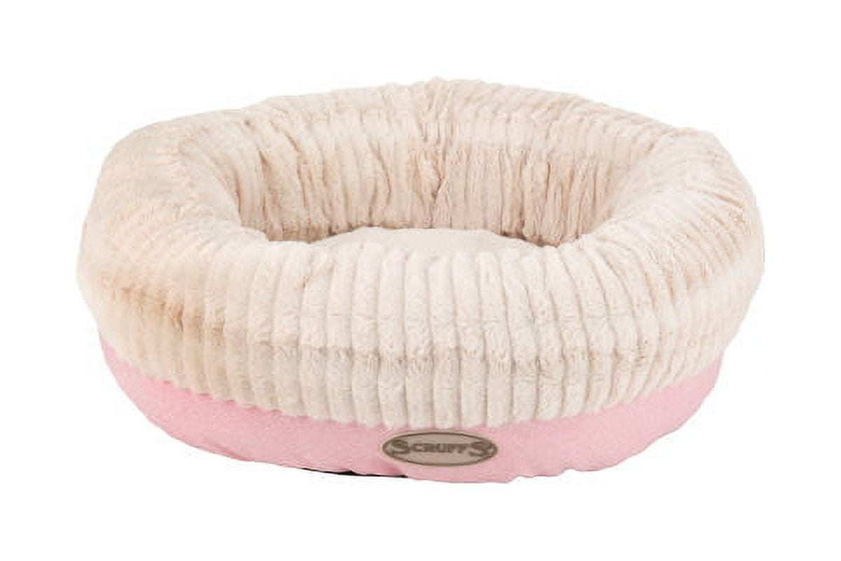 Scruffs Medium Non-Slip Faux Fur Dog Bed with Recycled Filling, Pink Produced using textured faux-fur with a contrasting tweed outer cover Available in three sizes 21.5” (donut only) 29.5” (donut only) and 39” x 27.5” (mattress only) Offered in three colors Grey Pink and Tan Two styles available Pet Mattress and Donut Bed designed for pets who like to sprawl out or curl up Features a non-slip base for easy access and enhanced safety Entire bed is machine washable at 30 degrees