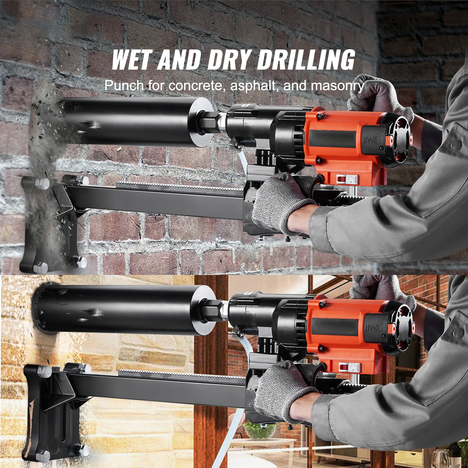 Our diamond wet and dry drilling machine is versatile and suitable for multiple projects like plumbing, electrical, HVAC, and construction; Its heavy-duty yet lightweight build enables easy portability and can handle various materials like concrete, red brick, and marble.