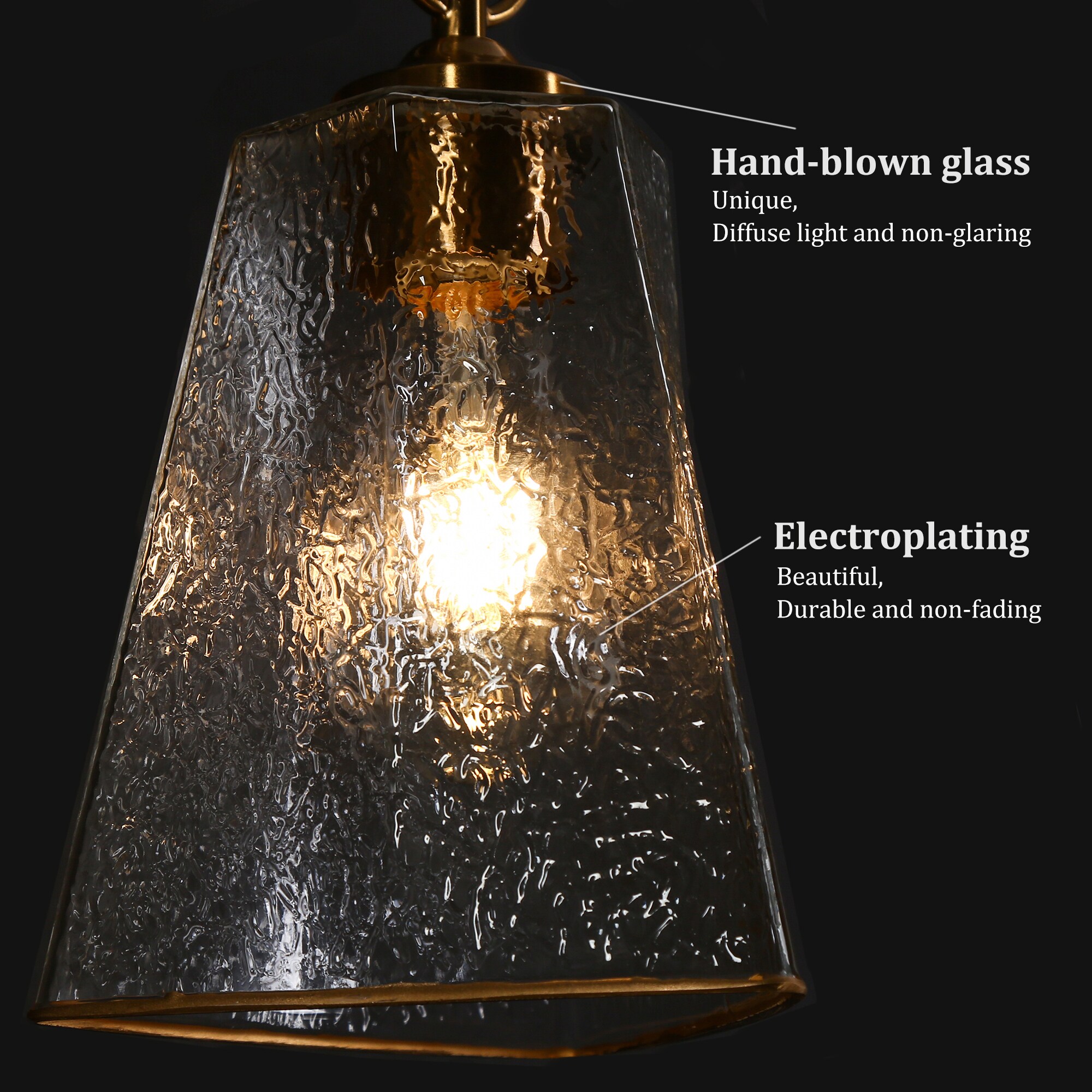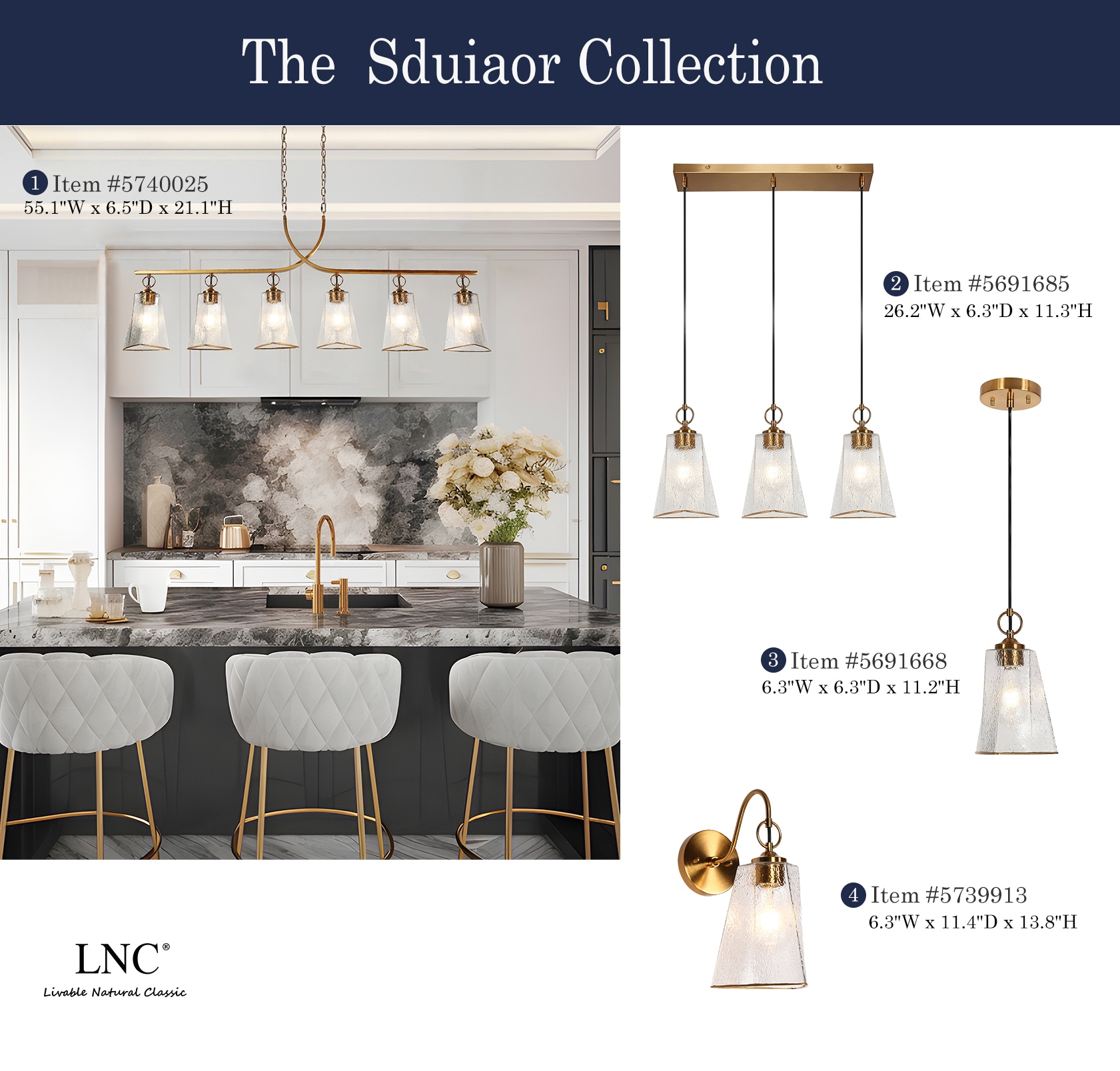 Elevate your home decor with our stunning LNC Sduiaor hanging light, featuring a sophisticated blend of modern elegance and geometric charm. The water-textured glass of the cone shape allows for beautifully diffused light, creating a warm and inviting atmosphere. Crafted with exquisite attention to detail, this chandelier showcases high-quality materials and a durable electroplated finish that ensures it maintains its dazzling shine without fading. Inspired by the serene beauty of the moon’s reflection on the sea, the design captures the essence of ripples formed when the moonlight is interrupted by a stone. The textured waves surrounding the light bulb evoke the gentle movement of water, bringing a calming and natural element to your space. The LNC Sduiaor collection includes chandeliers (5740025), pendant lights (5691685 and 5691668), and wall sconces (5739913), effortlessly enhancing any area in your home—from entryways and dining rooms to kitchens, bedrooms, living rooms, bathrooms, and lounges. Transform your space into a harmonious sanctuary of light and elegance, creating a unified luxurious ambiance that reflects your personal style.