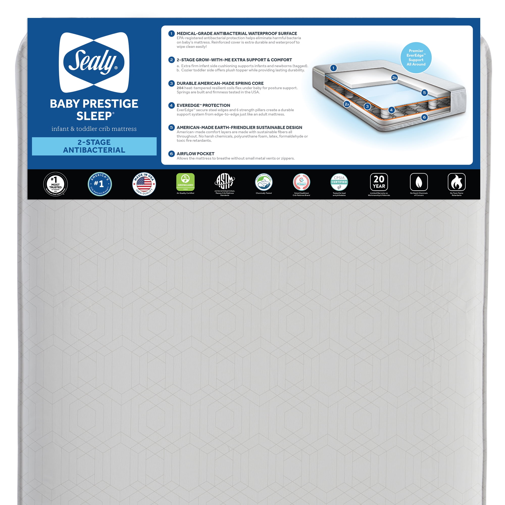Sealy Baby Prestige Sleep 2-Stage Crib Mattress and Toddler Mattress, Antibacterial Waterproof