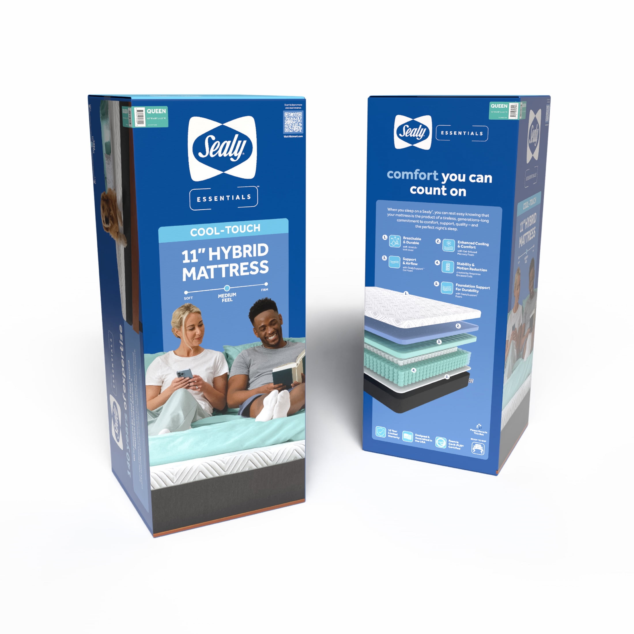 Sealy Essentials Cool-Touch 11” Hybrid Medium-Feel Queen Mattress-in-a-Box, Adult