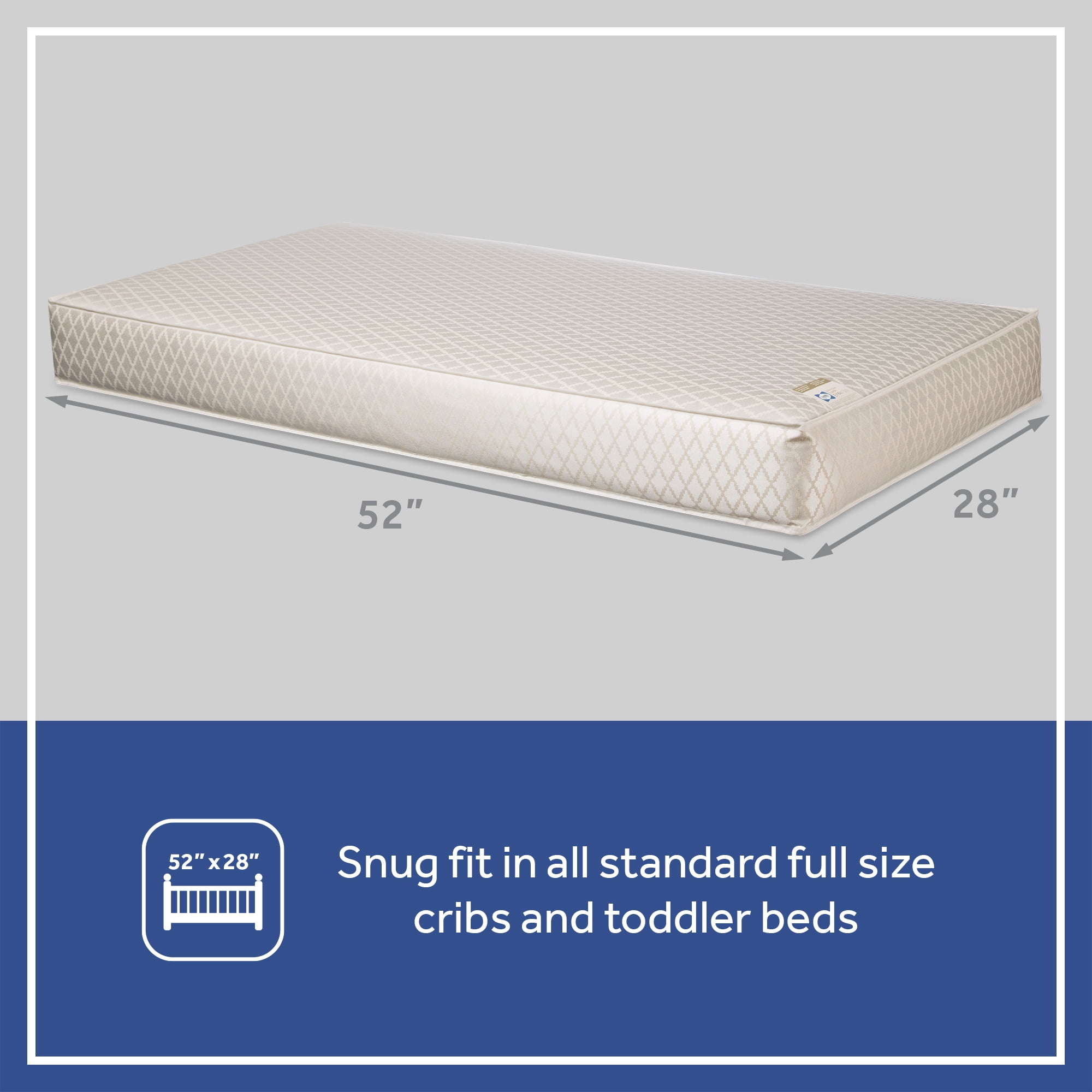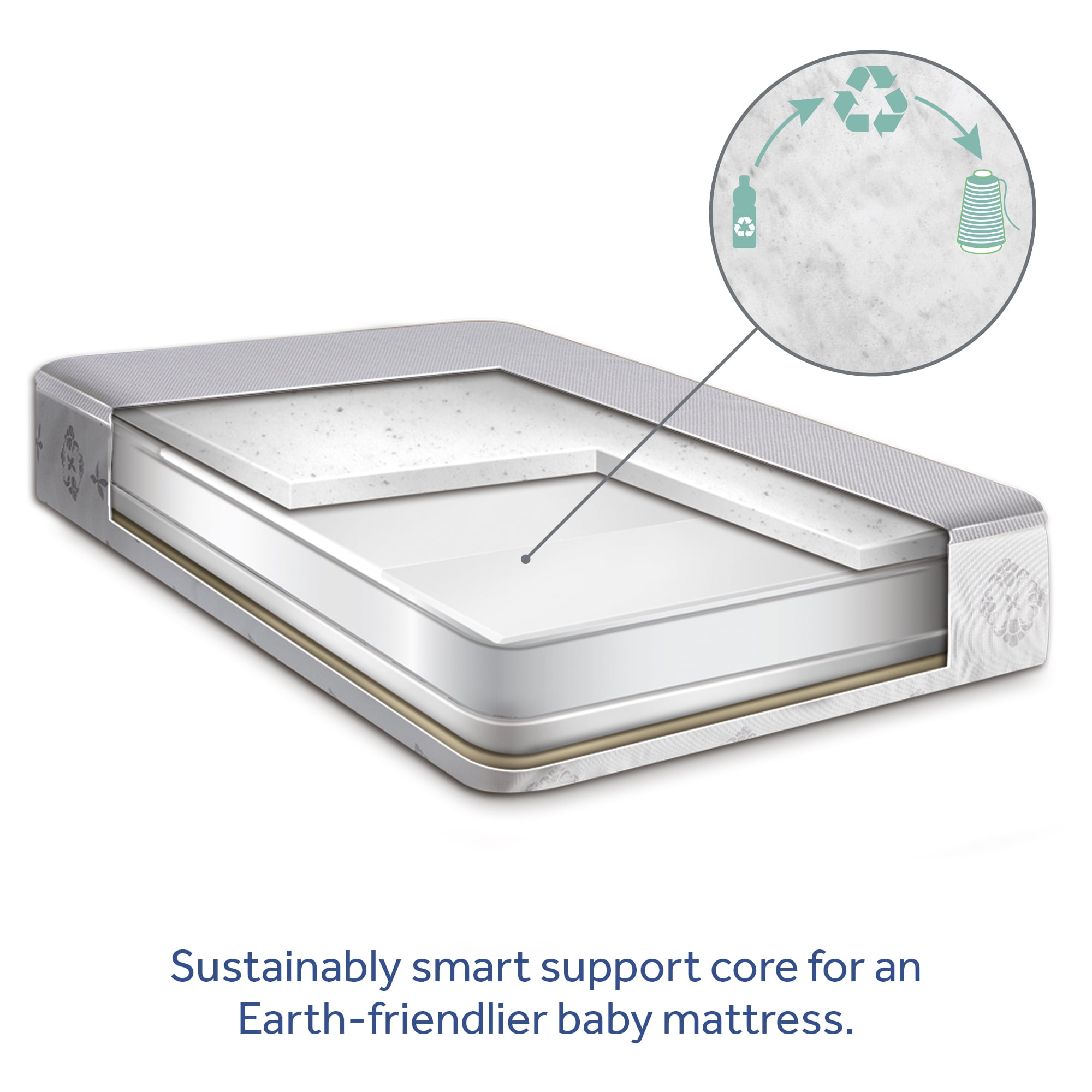 Lightweight 2-stage crib mattress is firmer on the infant side and softer on the toddler side Greenguard Gold Certified, Waterproof, non-toxic for baby, airflow pocket, baby crib and toddler mattress fit Luxurious cotton cover is comfortable, PVC-free, and breathable on baby’s skin Waterproof barrier and binding helps prevent liquids from seeping inside the mattress Lightweight design makes changing sheets and crib pads easy, weighs only 10 pounds Protective cotton wrap provides comfort and durability Safety, quality and ASTM compliant for durability, tested for long-lasting use Additional layer on toddler side for added comfort GREENGUARD GOLD Air Quality Certified for a healthier sleeping environment for baby An Earth-friendlier core rescues ocean-bound plastics and transforms them into hypoallergenic fibers spun into a firm core Lifetime warranty on workmanship and materials Airflow pocket for freshness Hypoallergenic lightweight sustainable core is firm and durable for infants toddlers More babies sleep on a Sealy crib mattress which exceed standards for safety, quality and provide lasting comfort Square corner design for a snug fit in USA standard full-size cribs and toddler bed frames IMPORTANT – CHECK THE SELLER PRIOR TO MAKING YOUR PURCHASE. Sealy cannot guarantee the quality or authenticity of Sealy products from unauthorized sellers on . To ensure the very highest safety and quality for you and your family, only buy from listings that are “Sold and Shipped by .” The Sealy warranty does not cover products purchased from unauthorized sellers.