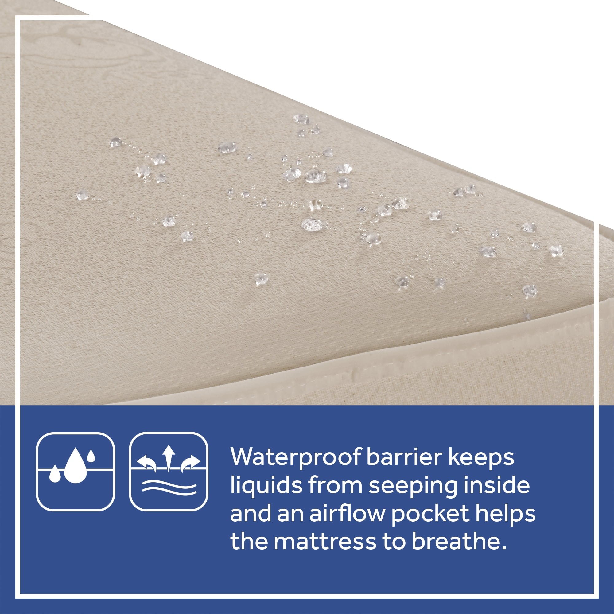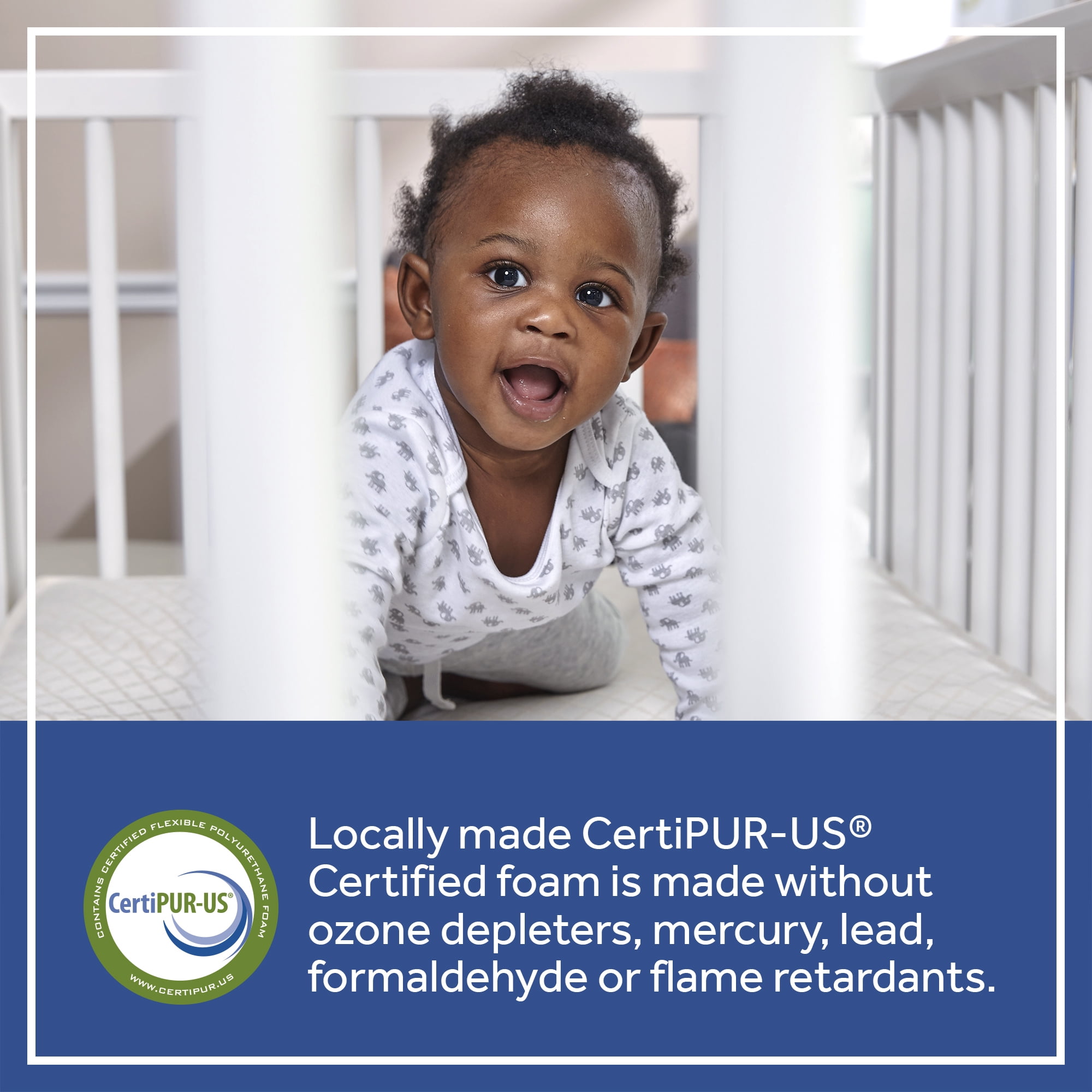Square corner design creates a snug fit inside cribs and accommodates encasements, pads, and sheets easily Foam is CertiPUR-US Certified for durability, quality, and chemical emissions The cover is enhanced with a waterproof and stain-resistant coating to help prevent allergens, mold, and odors from spreading GREENGUARD GOLD Certified for a healthier indoor environment Measures 51.63″ x 27.27″ x 5″ To snugly fit inside USA standard size cribs and toddler beds Greenguard Gold Certified, Waterproof, non-toxic for baby, airflow pocket, crib and toddler mattress fit IMPORTANT – CHECK THE SELLER PRIOR TO MAKING YOUR PURCHASE. Sealy cannot guarantee the quality or authenticity of Sealy products from unauthorized sellers on . To ensure the very highest safety and quality for you and your family, only buy from listings that are “Sold and Shipped by .” The Sealy warranty does not cover products purchased from unauthorized sellers.